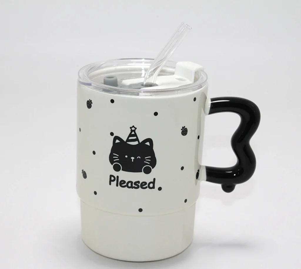 BUĞZ Sevimli Ayı Figürlü Pipetli Kapaklı Porselen Kupa Bardak