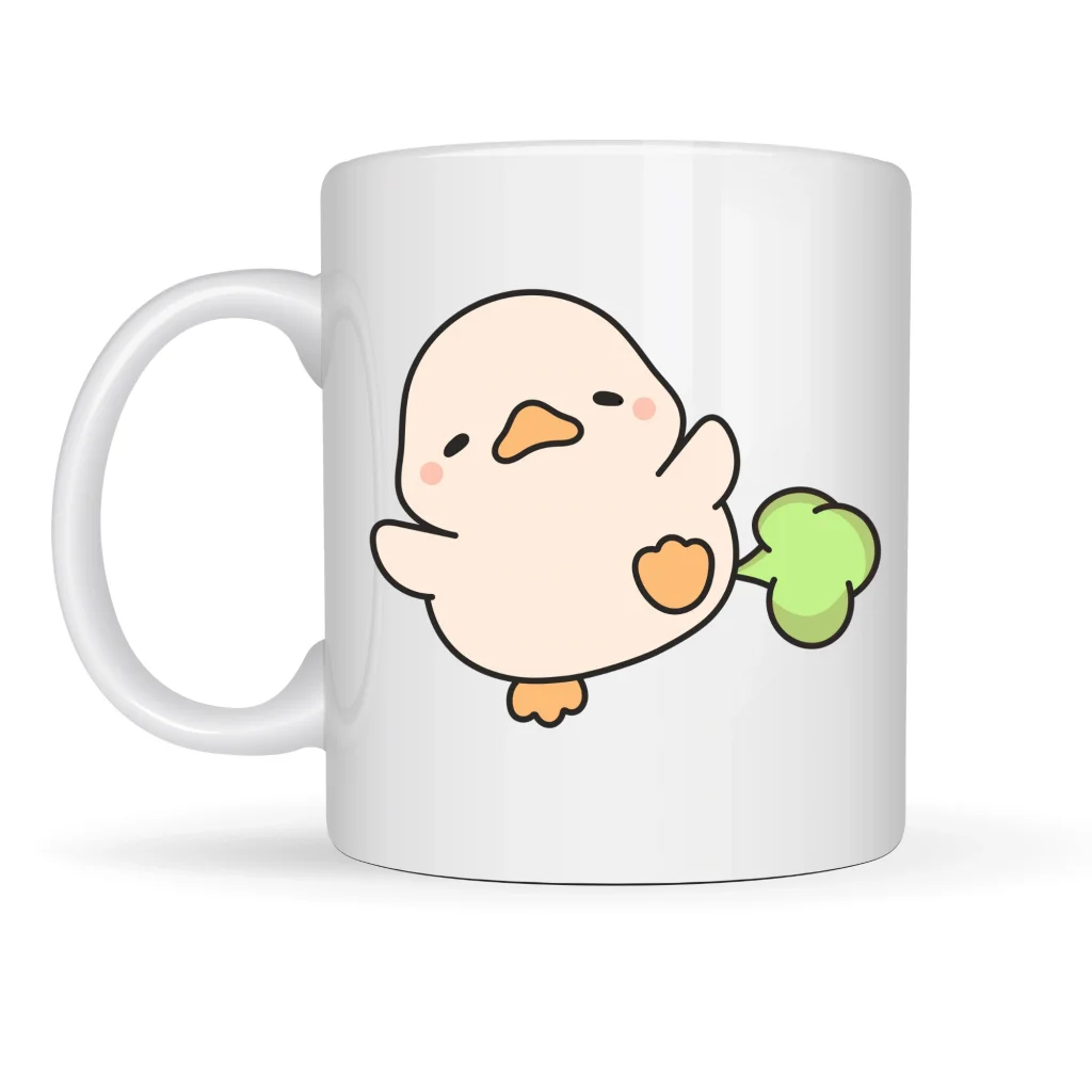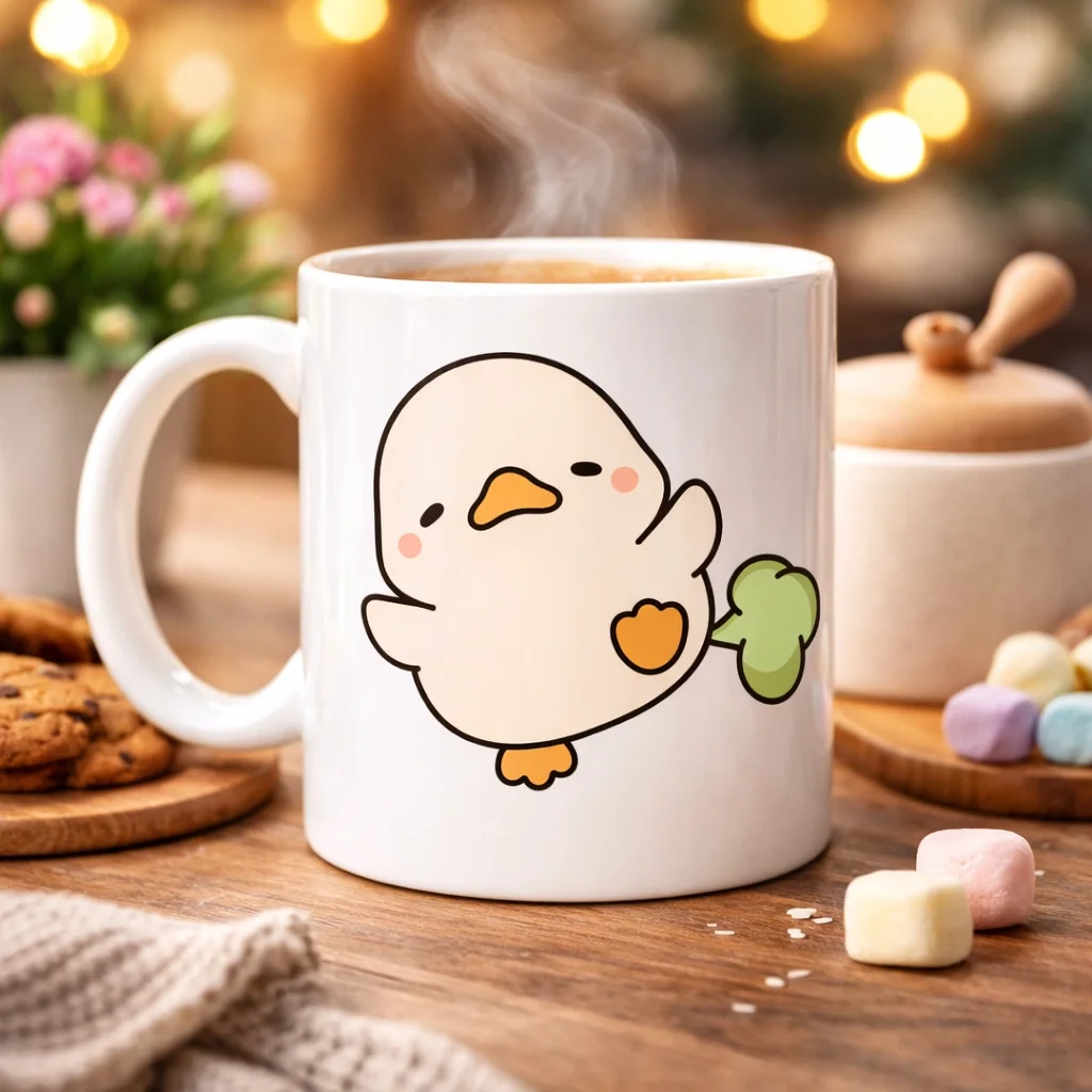 Bu sevimli civciv figürlü kupa, utangaç bakışı ve eğlenceli duruşuyla kahve molalarına neşe katıyor.