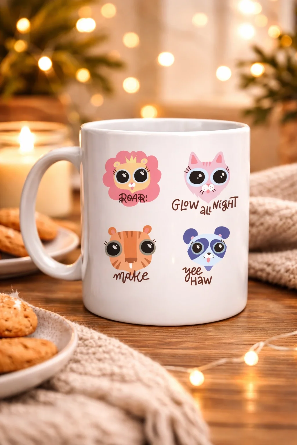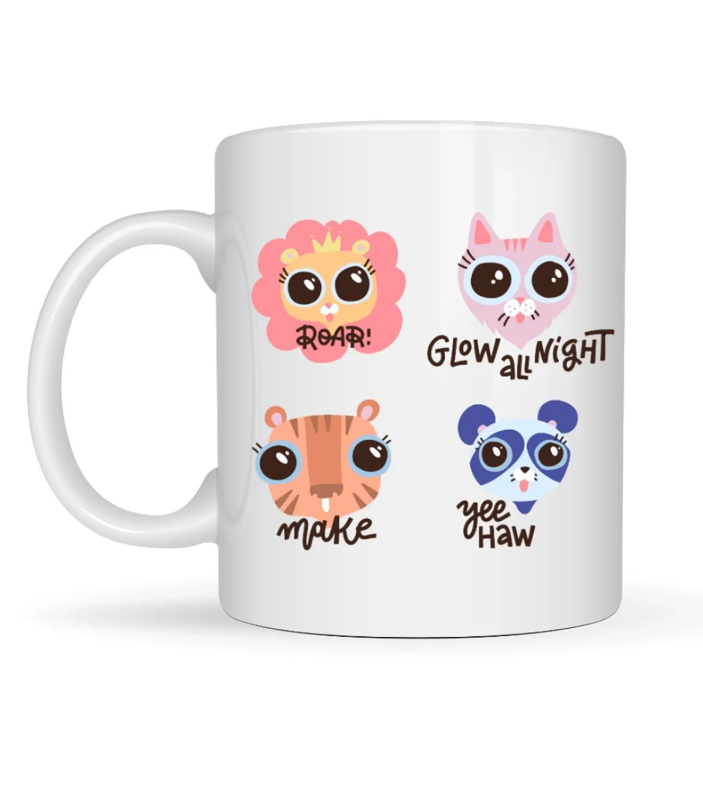 Sevimli ifadeleri, pastel tonları ve sıcak çizim tarzıyla bu kupa;