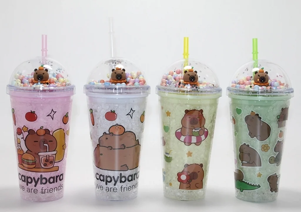BUĞZ Sevimli Kapibara Pipetli Boncuklu Termos & Suluk