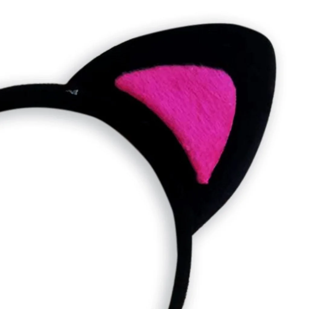 BUĞZ Sevimli Kedi Kulak Pofuduk Kedi Taç Siyah İçi Şeker Fuşya Renk 17x15 cm
