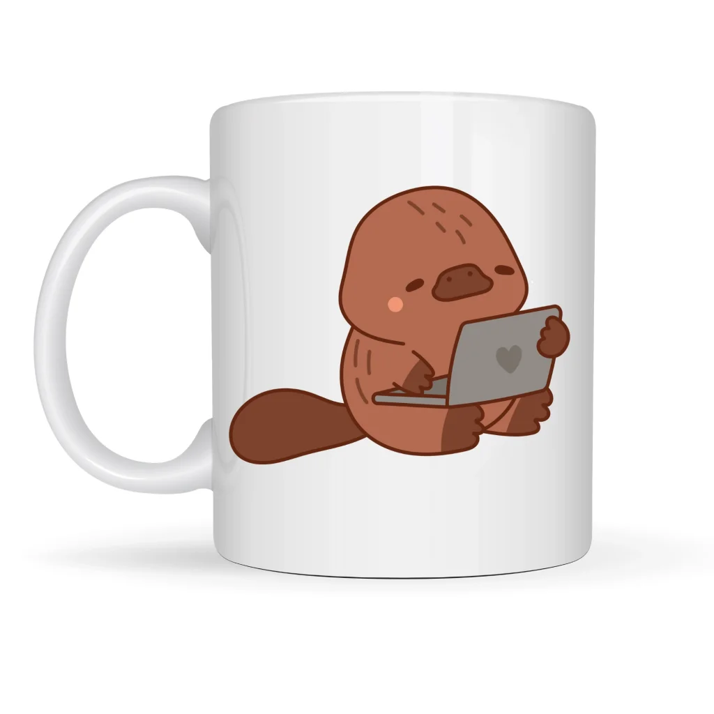 Bu özel porselen kupa üzerinde, laptopuyla meşgul olan sevimli bir ornitorenk yer alıyor ????