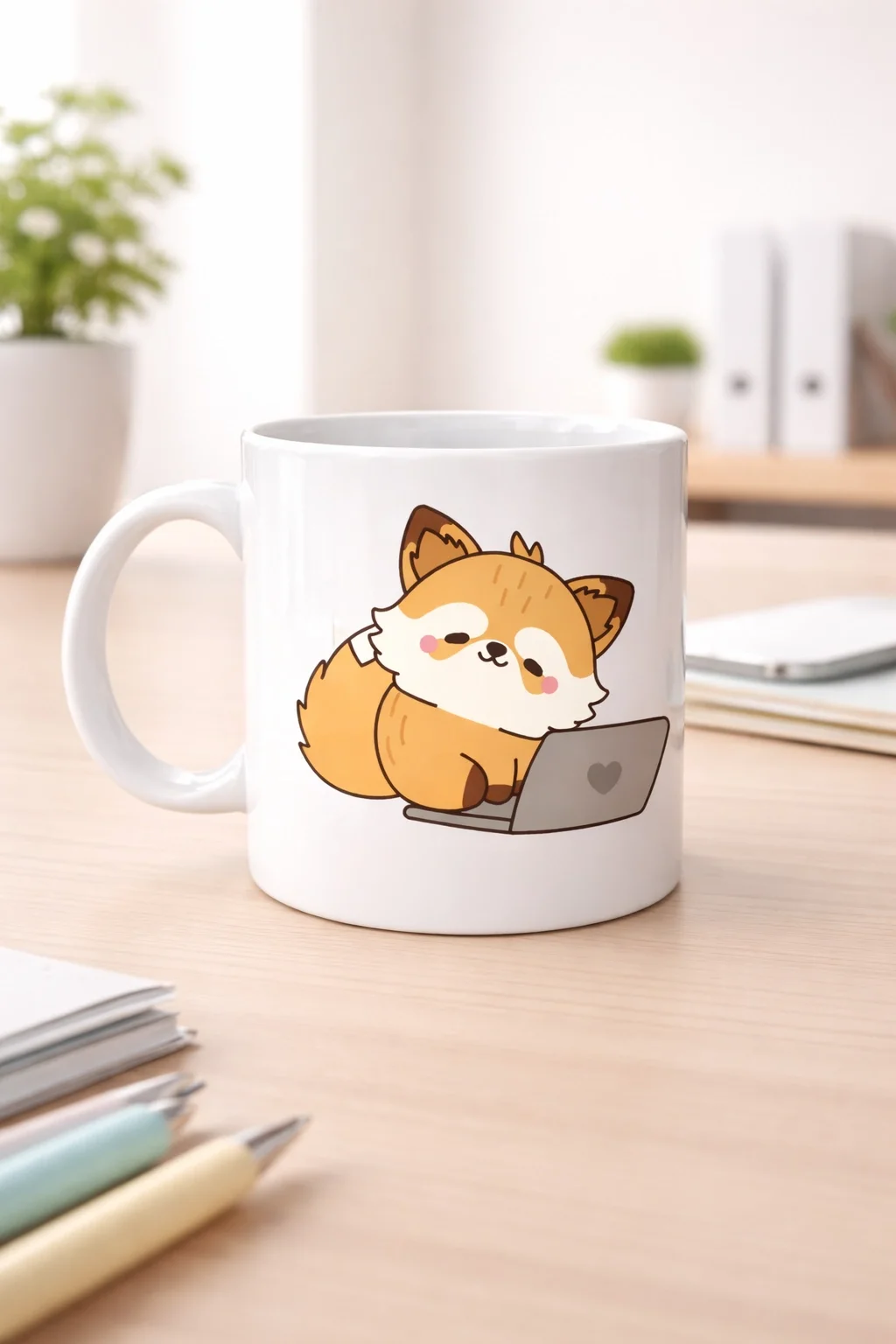 Tilki figürü; çalışkanlığı, zekâyı ve tatlı bir enerjiyi simgeler. Laptop başındaki bu sevimli karakter, “küçük molalar da çok değerli” mesajını verir. Günlük koşuşturma içinde kendinize ayırdığınız o kısa kahve molalarını daha anlamlı kılar ??