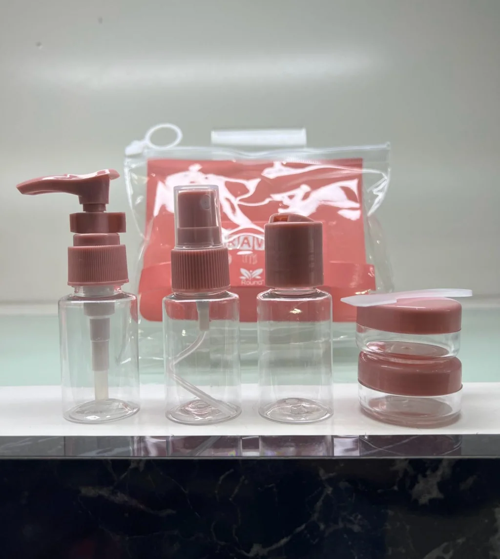 SEYAHAT BANYO SETİ 6 PARÇASeyahat banyo seti şu 6 parçayı içerir: Bir adet nemlendirici ya da sabunluk olarak kullanılabilen şişe, bir adet sprey, bir adet şampuanlık, iki adet krem kutusu, bir adet spatula ve ürünlerin taşınması için kullanılabilecek pratik bir taşıma çantası.Bu set, seyahatlerde ihtiyaç duyulan temel kişisel bakım ürünlerini kompakt bir şekilde sunarak pratik bir çözüm sunar. İleriye dönük seyahat planlarınızda rahatlıkla kullanabileceğiniz bir banyo seti olarak tasarlanmıştır.Ayrıca, her bir parça uygun boyutlarda olduğu için sınırlı bagaj alanlarında yer tasarrufu sağlar. Şeffaf ve dayanıklı malzemelerden yapılmış olan set, içeriğin kolayca görülebilmesini sağlar ve sızıntıları önlemek için özel olarak tasarlanmış kapatma sistemleri içerir. Bu sayede seyahatlerinizde kişisel bakımınızı düzenli ve sorunsuz bir şekilde sürdürebilirsiniz.Ayrıca, sprey, şampuanlık ve krem kutuları gibi parçalar, günlük kullanıma uygun boyutlarda olduğu için sadece seyahatlerde değil, spor salonu veya iş yerindeki ihtiyaçlarınızı da karşılamak için idealdir. Setin tasarımı, pratiklik ve şıklığı bir araya getirerek kullanıcıya taşınabilirlik konusunda maksimum kolaylık sunar.Renkler karışık çıkmaktadır.Şişeler 30 mililitredir.Paket İçeriği Seyahat banyo seti 6 parça