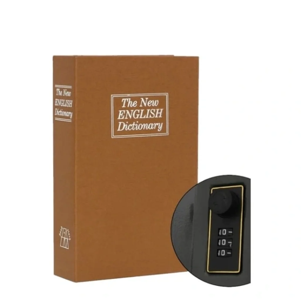 ŞİFRELİ KİTAP KASA Ürün ÖzellikleriŞifreli kitap kasa, gerçek kitap görünümünde tasarlanmış güvenli bir saklama kutusudur. Dış kısmı “The New English Dictionary” yazılı kapakla kaplanmıştır ve kitaplıkta sıradan bir kitap gibi durarak dikkat çekmez. İç kısmında çelik kasa bölmesi bulunur ve 3 haneli şifreleme sistemiyle korunur. Değerli eşyalarınızı, nakit nızı, takılarınızı ve belgelerinizi güvenle saklamak için idealdir. Hem ev hem de ofis kullanımı için uygundur. Kompakt boyutları sayesinde kolay taşınabilir ve gizlenebilir.Paket İçeriği1 adet Şifreli Kitap Kasa