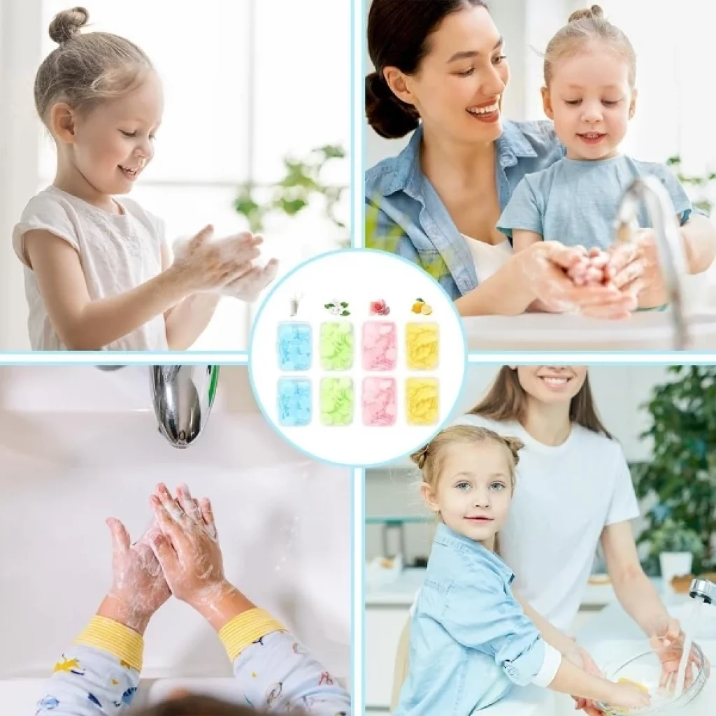 SİHİRLİ SABUNÜrün ÖzellikleriSihirli Sabun, özellikle elleri temizlemek için kullanılan çiçek şeklinde sabun dilimlerinden oluşan pratik bir temizlik ürünüdür. Çok renkli dilimler halinde paketlenmiş olan bu sabun, suyla temas ettiğinde eriyerek temizleme etkisi gösterir. Ürün, kullanıcılara pratik bir temizlik deneyimi sunarken, çeşitli güzel kokular ile de hoş bir deneyim sağlar. Temizlenmek istenen yüzeye birkaç dilim sabun yerleştirildikten sonra su ile temas ettirilir ve eller ya da diğer bölgeler kolayca temizlenir. Bu tarz sabunlar, dışarıda kullanım, çocuklar için, pratik, kullanışlı ve şık görünümleriyle tercih edilmektedir.Not: Ürün farklı renk ve kokularda mevcuttur ve stok durumuna göre karışık gönderim yapılmaktadır.Paket İçeriği1 paket Sihirli Sabun