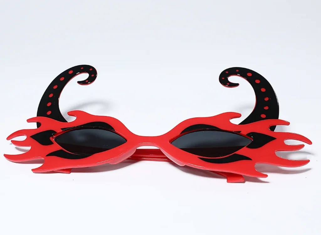 BUĞZ Siyah Boynuzlu Kırmızı Renk Alevli Parti Gözlüğü 21x10 cm