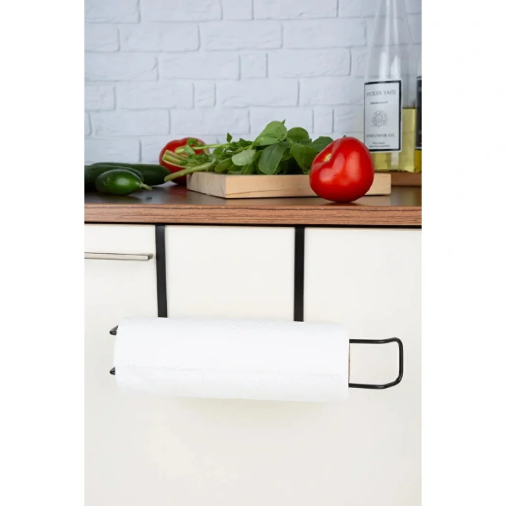 SİYAH DOLAP İÇİ KAĞIT HAVLULUK ASKIÜrün ÖzellikleriSiyah Dolap İçi Kağıt Havluluk Askı, modern tasarımı ve fonksiyonelliği ile mutfaklarda pratik kullanım sunar. 28 x 13 cm ölçüleri sayesinde küçük alanlarda bile rahatça kullanılabilir. Metal malzemeden üretilmiş olup sağlam yapısıyla uzun ömürlüdür. Sık kullanıma karşı dayanıklıdır ve formunu korur. Dolap içi veya altına kolayca monte edilerek kağıt havlularınızı düzenli ve erişilebilir bir şekilde saklamanıza yardımcı olur. Nemli bir bez ile silinerek kolayca temizlenebilir, böylece hijyenik bir kullanım imkânı sağlar.Paket İçeriği1 adet Siyah Dolap İçi Kağıt Havluluk Askı