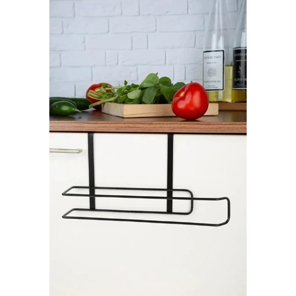 SİYAH DOLAP İÇİ KAĞIT HAVLULUK ASKIÜrün ÖzellikleriSiyah Dolap İçi Kağıt Havluluk Askı, modern tasarımı ve fonksiyonelliği ile mutfaklarda pratik kullanım sunar. 28 x 13 cm ölçüleri sayesinde küçük alanlarda bile rahatça kullanılabilir. Metal malzemeden üretilmiş olup sağlam yapısıyla uzun ömürlüdür. Sık kullanıma karşı dayanıklıdır ve formunu korur. Dolap içi veya altına kolayca monte edilerek kağıt havlularınızı düzenli ve erişilebilir bir şekilde saklamanıza yardımcı olur. Nemli bir bez ile silinerek kolayca temizlenebilir, böylece hijyenik bir kullanım imkânı sağlar.Paket İçeriği1 adet Siyah Dolap İçi Kağıt Havluluk Askı