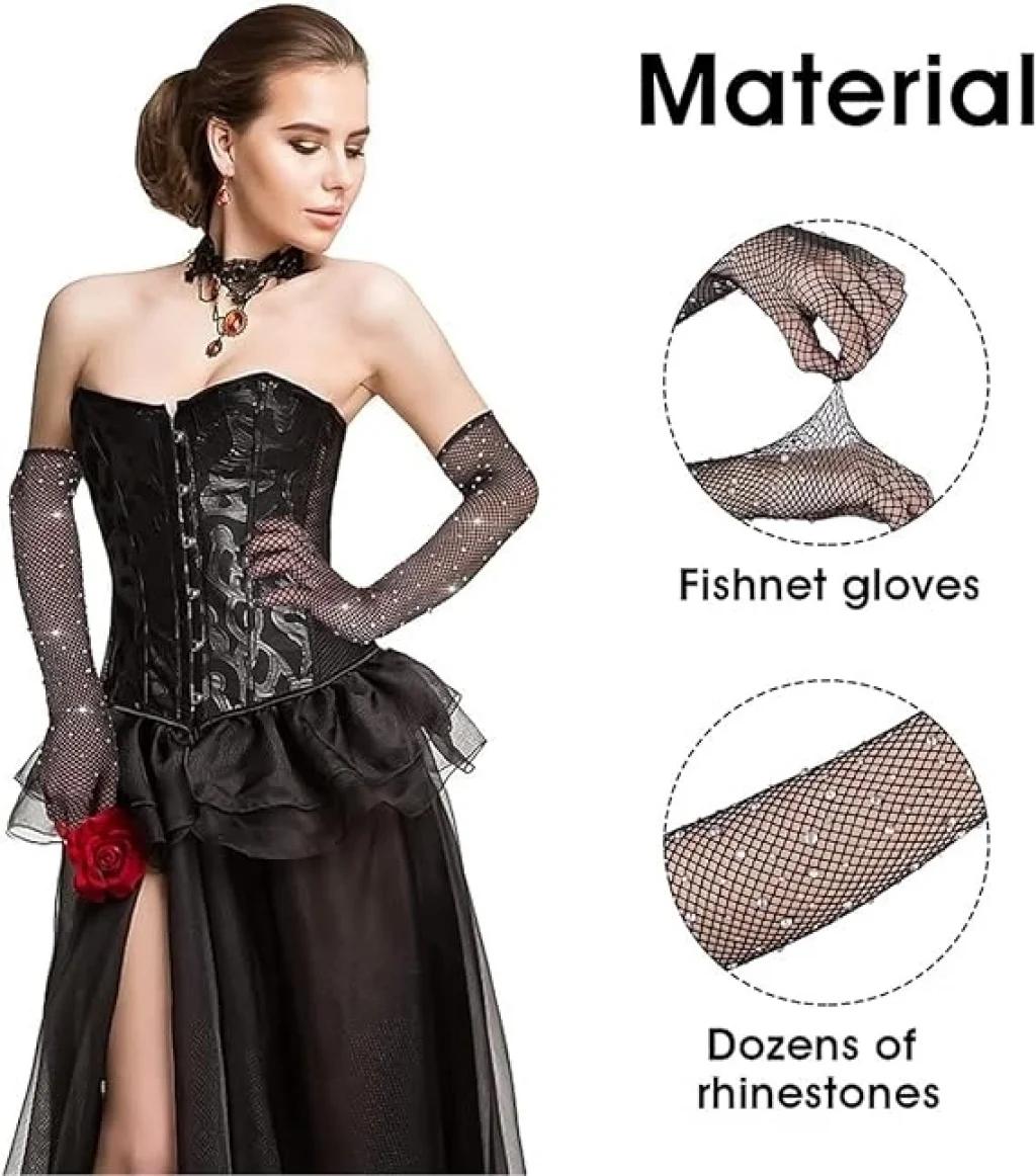 Siyah Renk İncili Elmas İşlemeli File Örgü Uzun Eldiven