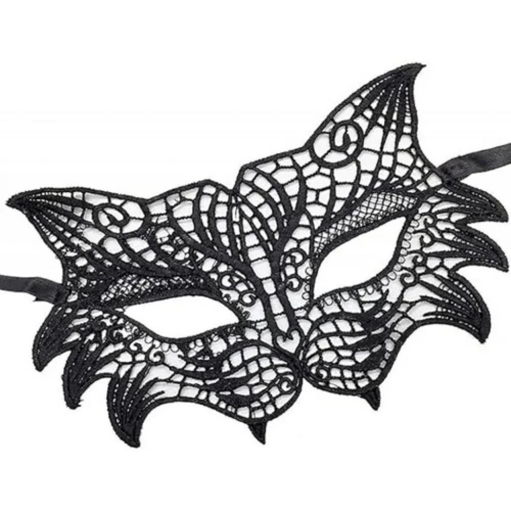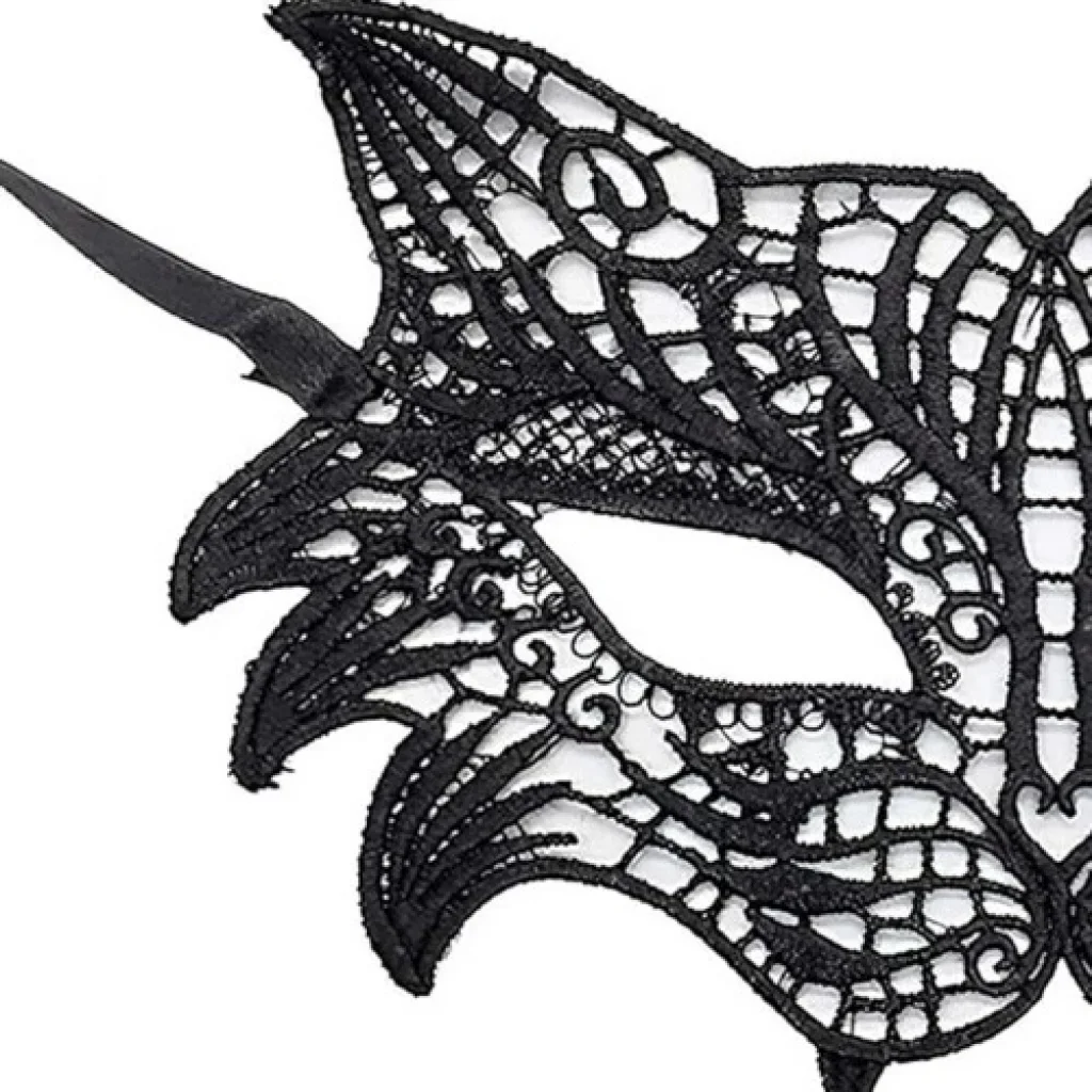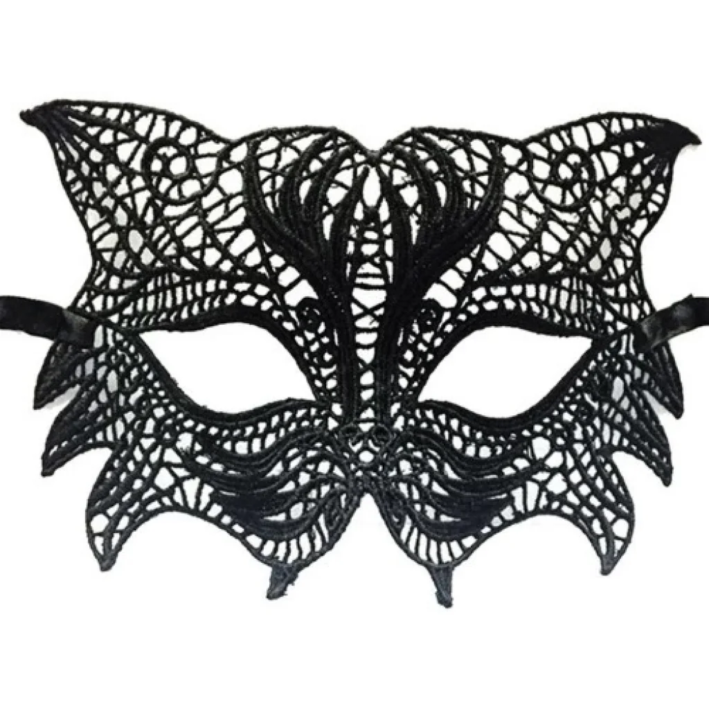 BUĞZ Siyah Renk Kedi Model Dantel İşleme Parti Maskesi