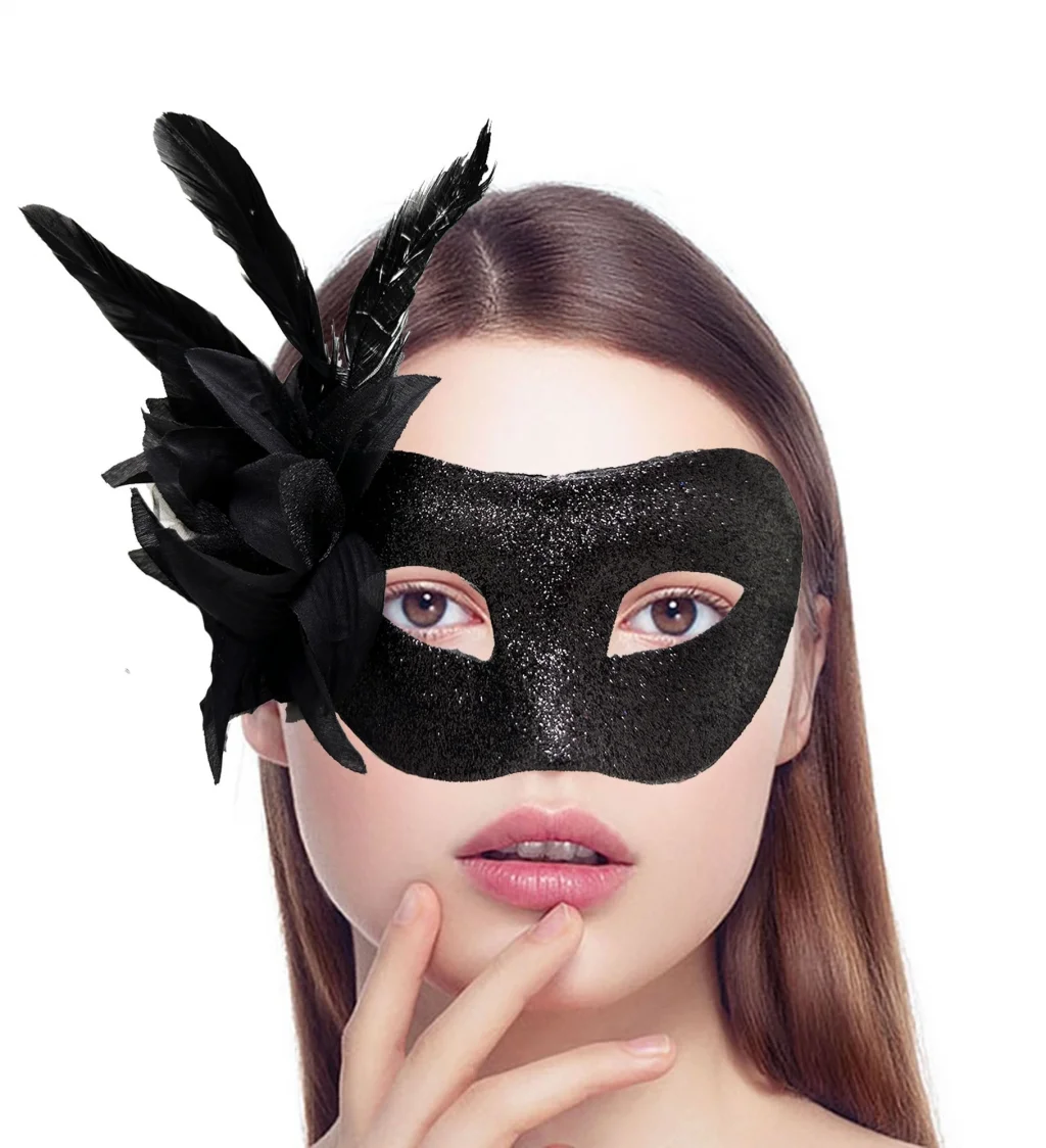 Siyah Renk Metalize Sim Görünümlü Parlak Tüylü Parti Maskesi, balolar, maskeli partiler veya özel geceler gibi özel günlerde göz alıcı ve modern bir görünüm elde etmek isteyenler için mükemmel bir seçimdir. Metalize sim görünümü ve parlak tüyleri ile bu maske sizi partinin en şık ve modern konuğu yapacak.