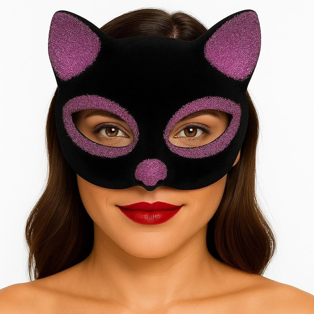 BUĞZ Siyah Renk Pembe Simli Süet Kaplama Kedi Maskesi 18x14 cm