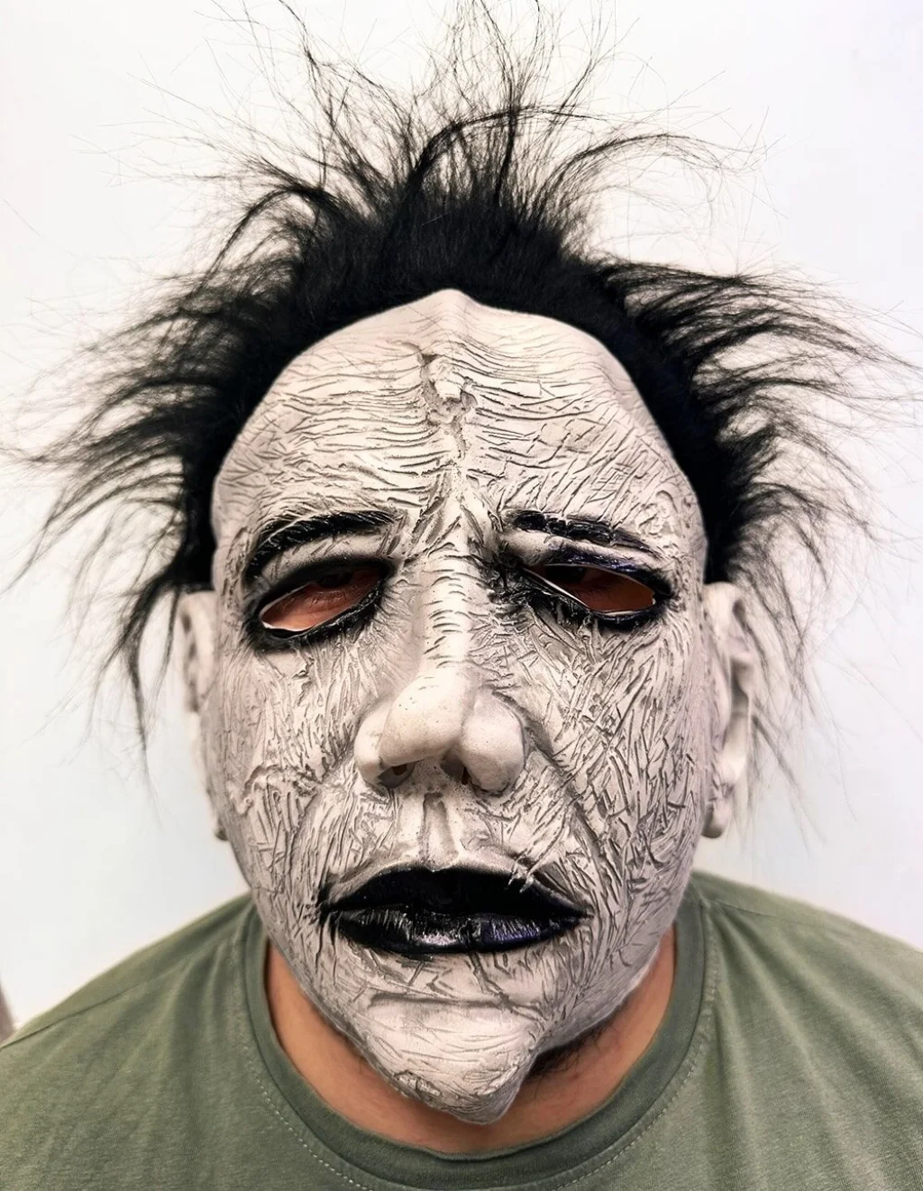 BUĞZ Siyah Saçlı Michael Myers Lateks Yüze Tam Yapışan Et Maske Korku Maskesi