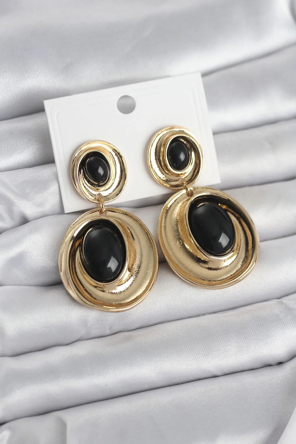 BUĞZ Siyah Sallantılı Damla Model Gold Renk Vintage Kadın Küpe