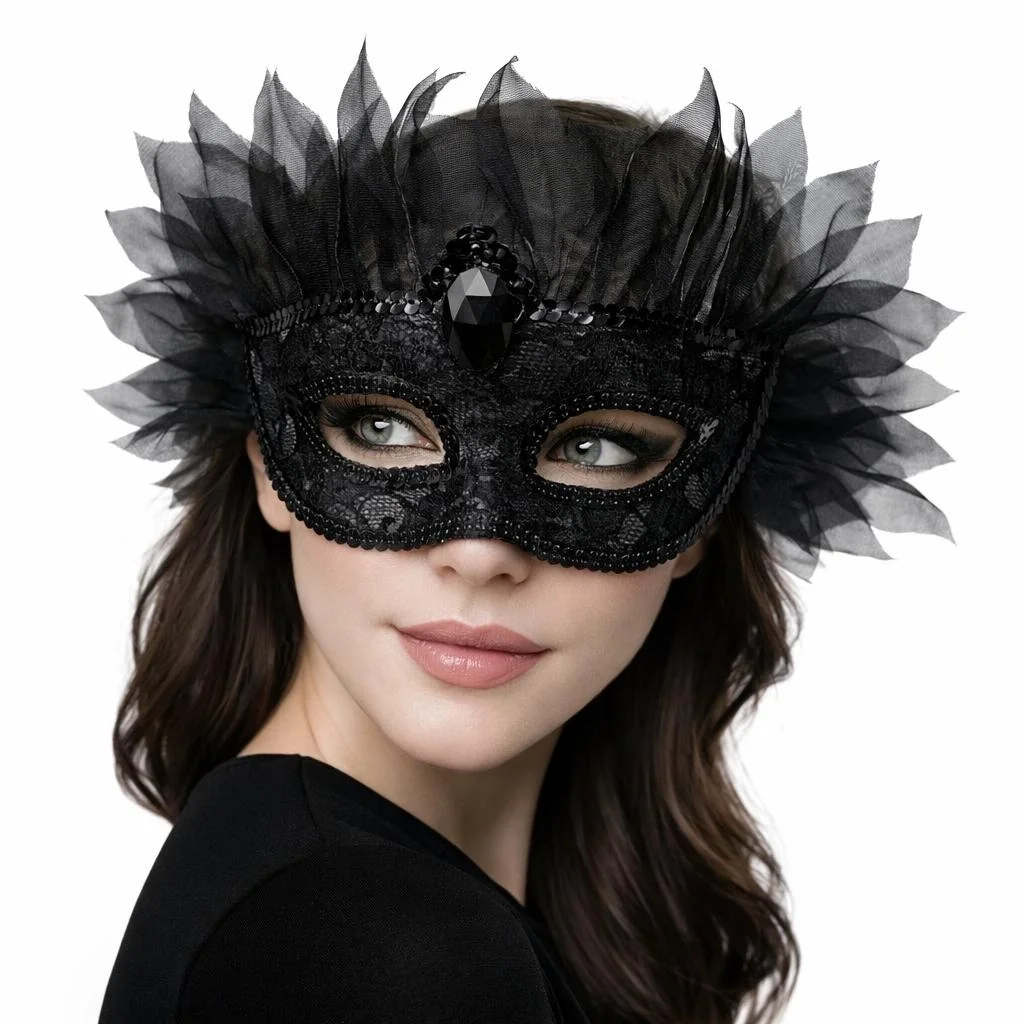 Gizemli ve zarif bir görünüm için tasarlanan siyah taşlı tüllü Venedik maskesi, özel davetlerinizde stilinizi ön plana çıkarır. Ön kısmındaki büyük taş detayı ve etrafındaki yoğun tül saçak tasarımı ile premium bir görünüm sunar.