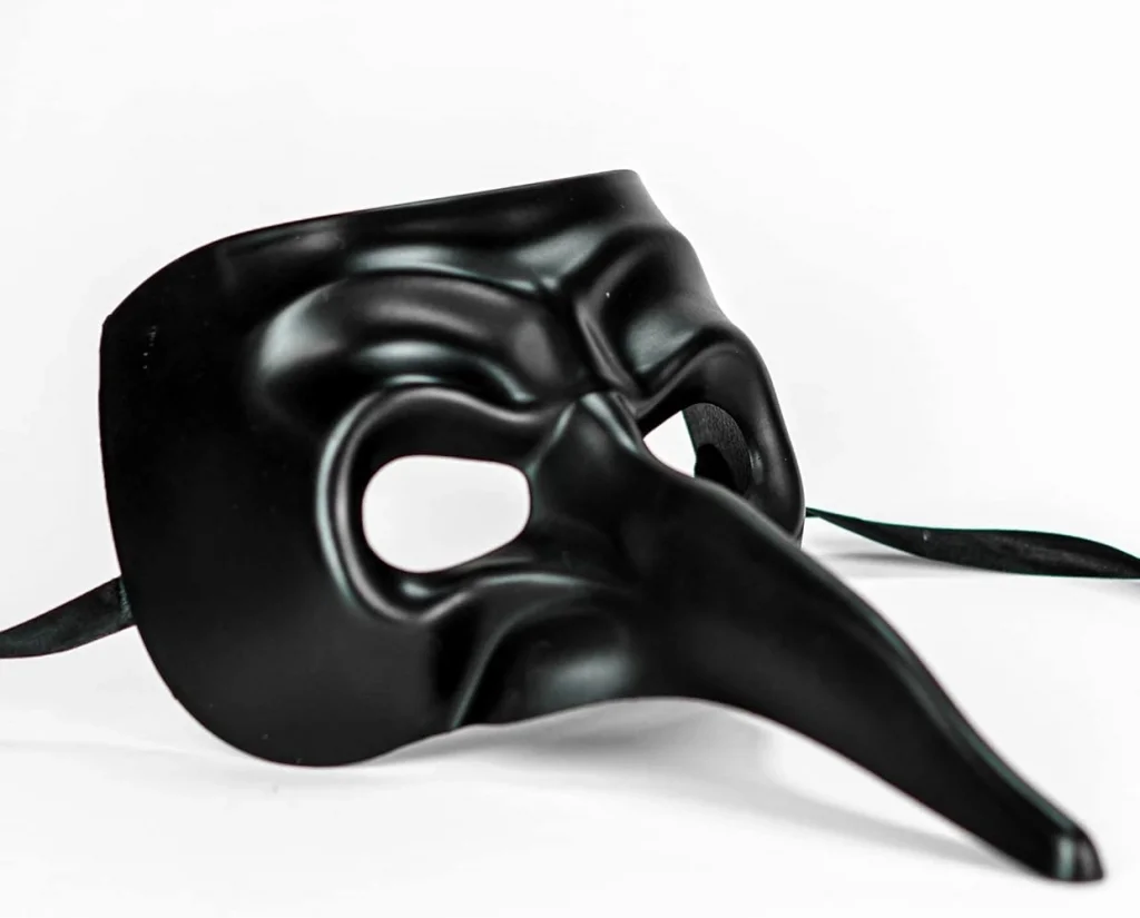 Siyah uzun burun tasarımıyla dikkat çeken veba doktoru maskesi, Venedik tarzı klasik maskelerden ilham alınarak üretilmiştir. Gizemli ve dikkat çekici görünümü sayesinde parti, eğlence, kostüm ve sahne etkinliklerinde kullanılabilecek ideal bir aksesuardır.