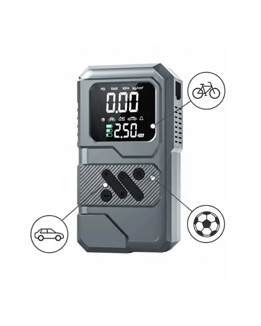 Çok fonksiyonlu yapısıyla öne çıkan bu taşınabilir cihaz, araç kullanıcılarının farklı ihtiyaçlarını tek bir ürünle karşılamayı hedefler. Akü takviye, lastik şişirme, LED aydınlatma ve powerbank özellikleri sayesinde sürücülere pratik çözümler sunar. 12.000 mAh kapasiteli bataryası, günlük kullanımda ve acil durumlarda yeterli enerji desteği sağlar.Akü takviye fonksiyonu, 12V araçlarla uyumlu olacak şekilde tasarlanmıştır. Uzun süre kullanılmayan araçlarda veya soğuk hava koşullarında yaşanabilecek akü problemlerinde destekleyici bir rol üstlenir. Lastik şişirme özelliği, dijital hava kompresörü sayesinde hassas basınç ayarı yapılmasına olanak tanır. Bu sayede lastiklerin ideal basınç seviyesinde tutulması kolaylaşır ve sürüş güvenliği desteklenir.LED aydınlatma sistemi, gece ve düşük ışık koşullarında kullanım kolaylığı sağlar. Yol kenarında yapılan müdahalelerde ortamın aydınlatılmasına yardımcı olurken, acil durumlarda fark edilirliği artırır. Powerbank özelliği ile telefon ve diğer elektronik cihazların şarj edilmesi mümkündür. Bu fonksiyon, özellikle uzun yolculuklarda büyük bir avantaj sağlar.Kompakt tasarımı sayesinde araç içerisinde az yer kaplar ve kolayca taşınabilir. Dayanıklı gövde yapısı, ürünü uzun süreli kullanıma uygun hale getirir. Taşıma kesesi ile birlikte sunulması, düzenli ve güvenli bir kullanım imkânı sağlar. Hem şehir içi hem de uzun yolculuklarda araç kullanıcıları için pratik bir yardımcıdır.Ürün Markası: BUĞZ