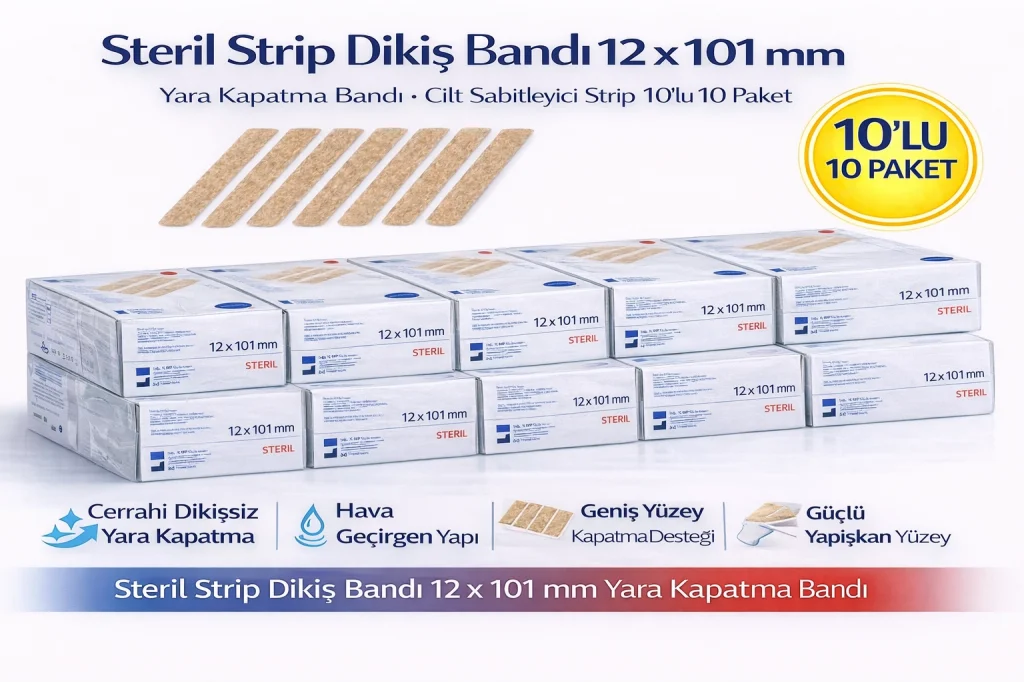 Steril Strip Dikiş Bandı 12 x 101 mm Yara Kapatma Bandı Cilt Sabitleyici Strip 10’lu 10 Paket