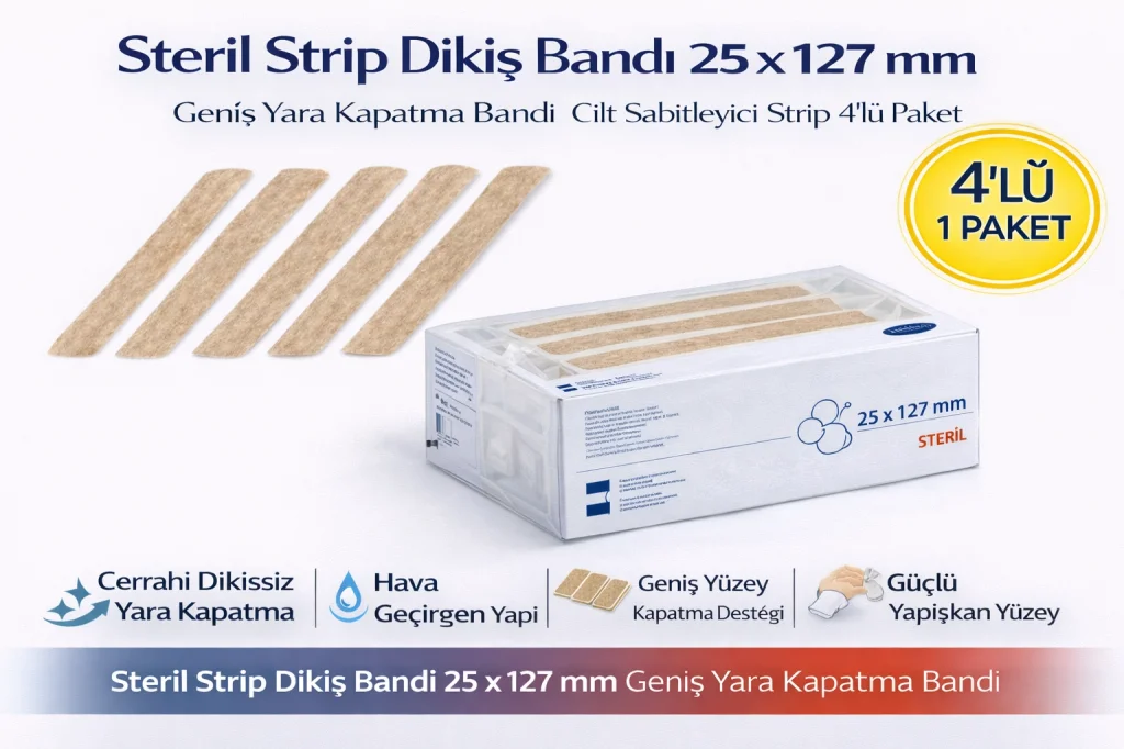 Steril Strip Dikiş Bandı 25 x 127 mm Geniş Yara Kapatma Bandı Cilt Sabitleyici Strip 4’lü Paket