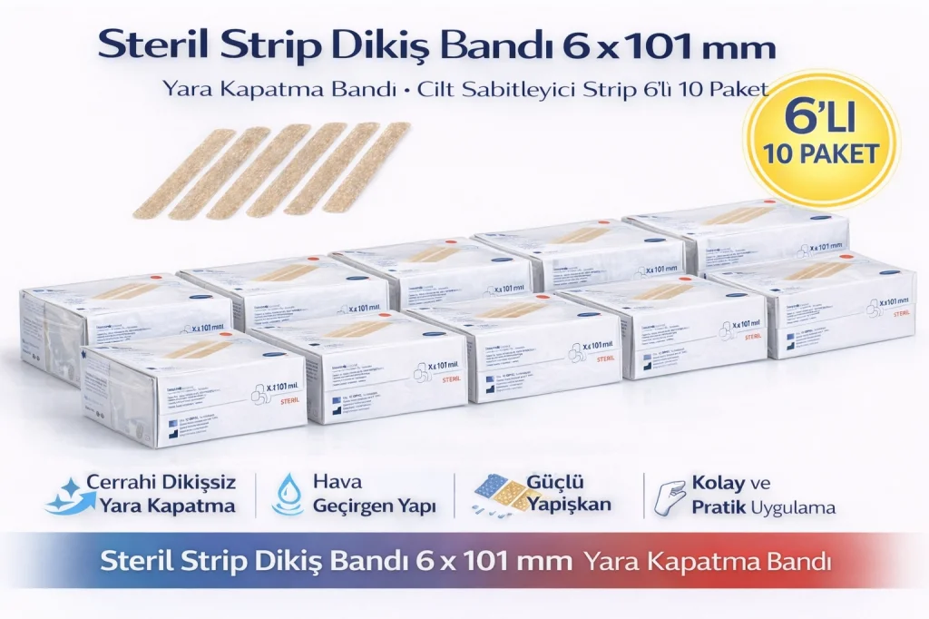 Steril Strip Dikiş Bandı 6 x 101 mm Yara Kapatma Bandı Cilt Sabitleyici Strip 6’lı 10 Paket