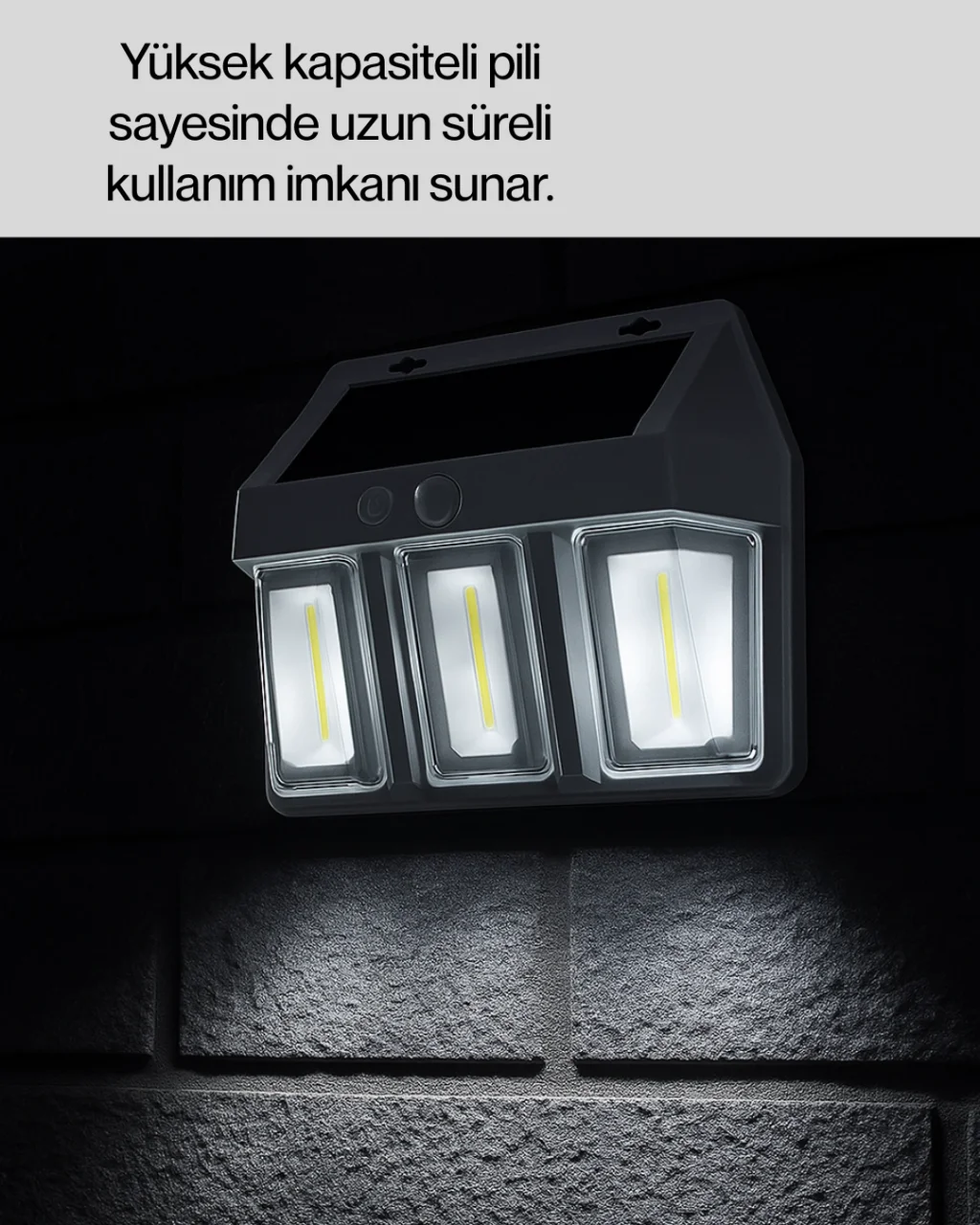 BK-618-3 Solar Duvar Lambası, dış mekânlarda modern, ekonomik ve güvenli bir aydınlatma çözümü sunar. Güneş enerjisiyle çalışan paneli sayesinde elektrik tesisatına gerek duymadan kurulabilir. Gün boyunca güneş ışığını depolayarak gece boyunca ışık sağlar. IC sensör teknolojisi sayesinde gün ışığına duyarlı olarak otomatik açılıp kapanır. PIR hareket sensörü, 120° açıyla hareketi algılar ve güçlü ışık sağlar. Bu, özellikle güvenlik açısından avantajlıdır. Üç farklı ışık modu ile kullanım amacınıza uygun olarak seçim yapabilirsiniz. ABS malzemeden üretilmiş gövdesi dayanıklı ve uzun ömürlüdür. IP65 sertifikası sayesinde yağmura, kara ve neme karşı yüksek dayanıklılık gösterir. Paket içeriğinde duvara montaj için vida seti ve kullanım kılavuzu bulunmaktadır. Bahçe, garaj, balkon, veranda ve duvar gibi pek çok alanda kullanılabilir. Hem güvenlik hem de dekoratif aydınlatma için ideal bir üründür. Enerji tasarruflu yapısıyla elektrik faturalarınızı azaltırken çevre dostu bir kullanım sağlar.Ürün Markası: Lisinya
