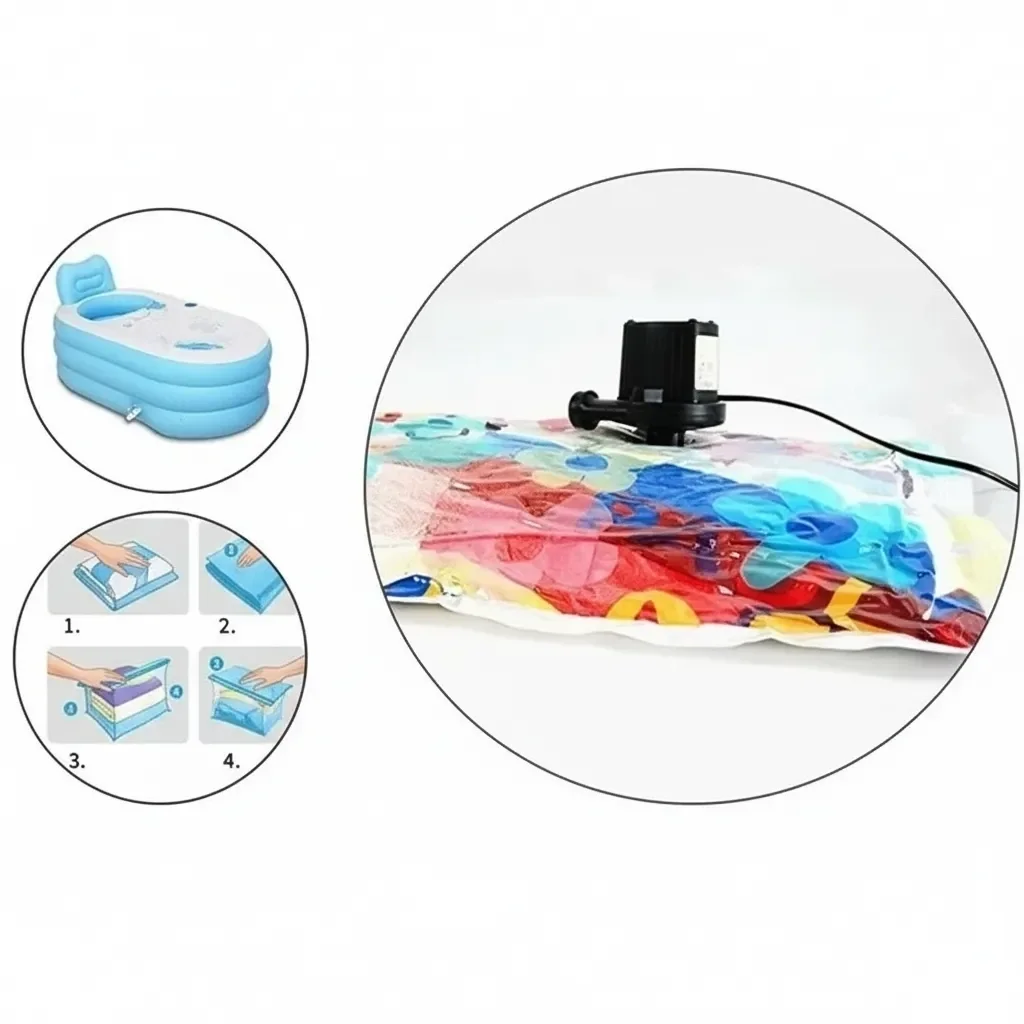 Vakumlu poşet aparatı ile kıyafetlerinizi veya diğer eşyalarınızı vakumlayarak saklayabilirsiniz.