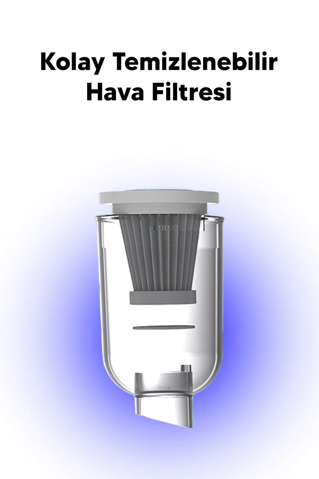 ?Yıkanabilir ve HEPA filtre?Güçlü ıslak ve kuru elektrikli süpürgeler yalnızca evcil hayvan tüyü, küçük toz kılı veya kir parçacıklarını emmekle kalmaz, aynı zamanda az miktarda sıvıyı da kolayca işleyebilir. Küçük elektrikli süpürgenin HEPA filtresi yıkanabilir ve tekrar kullanılabilir. Düzenli temizlik, emme etkisinin korunmasına yardımcı olur.
