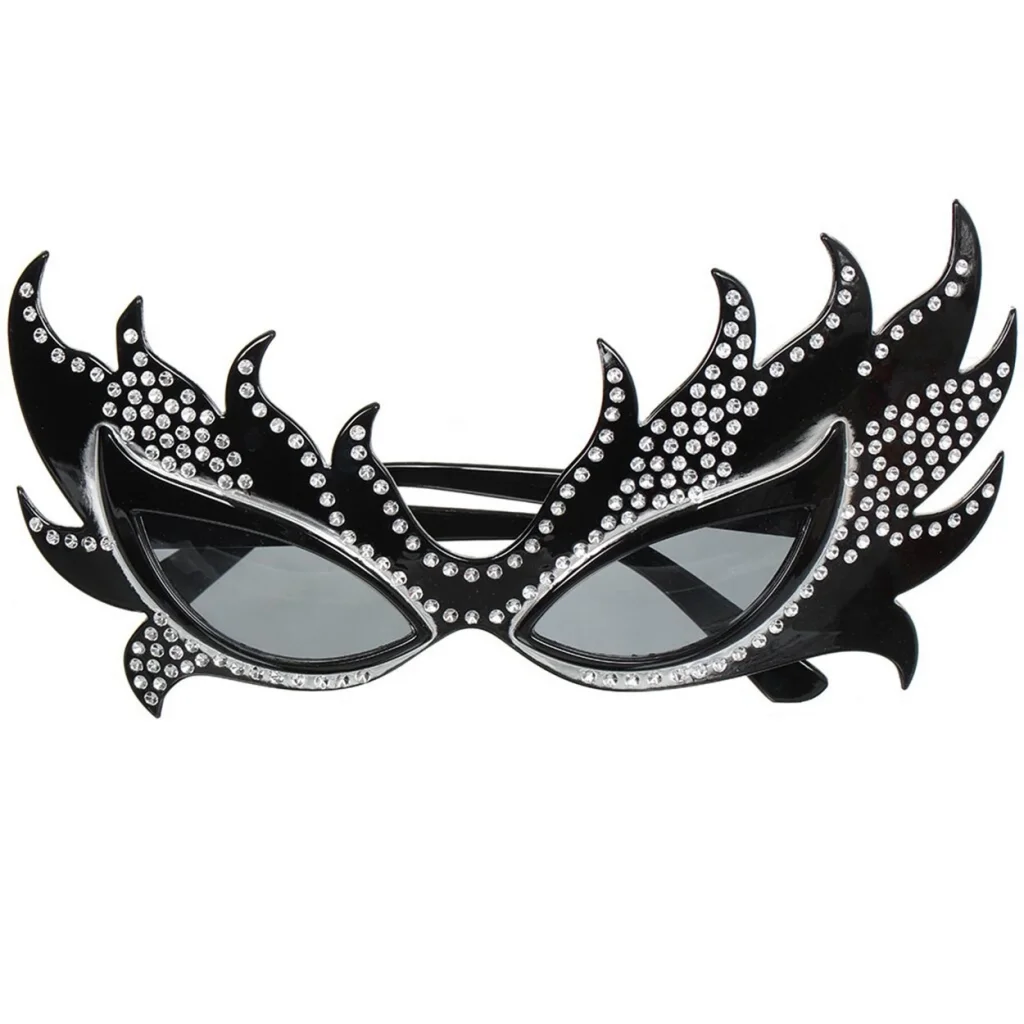Alev formundaki çerçevesi, ışıltılı taş detayları ve özgün tasarımıyla bu gözlük maskeli balolardan konsept partilere, gece eğlencelerinden sahne şovlarına kadar her ortamda fark oluşturur.