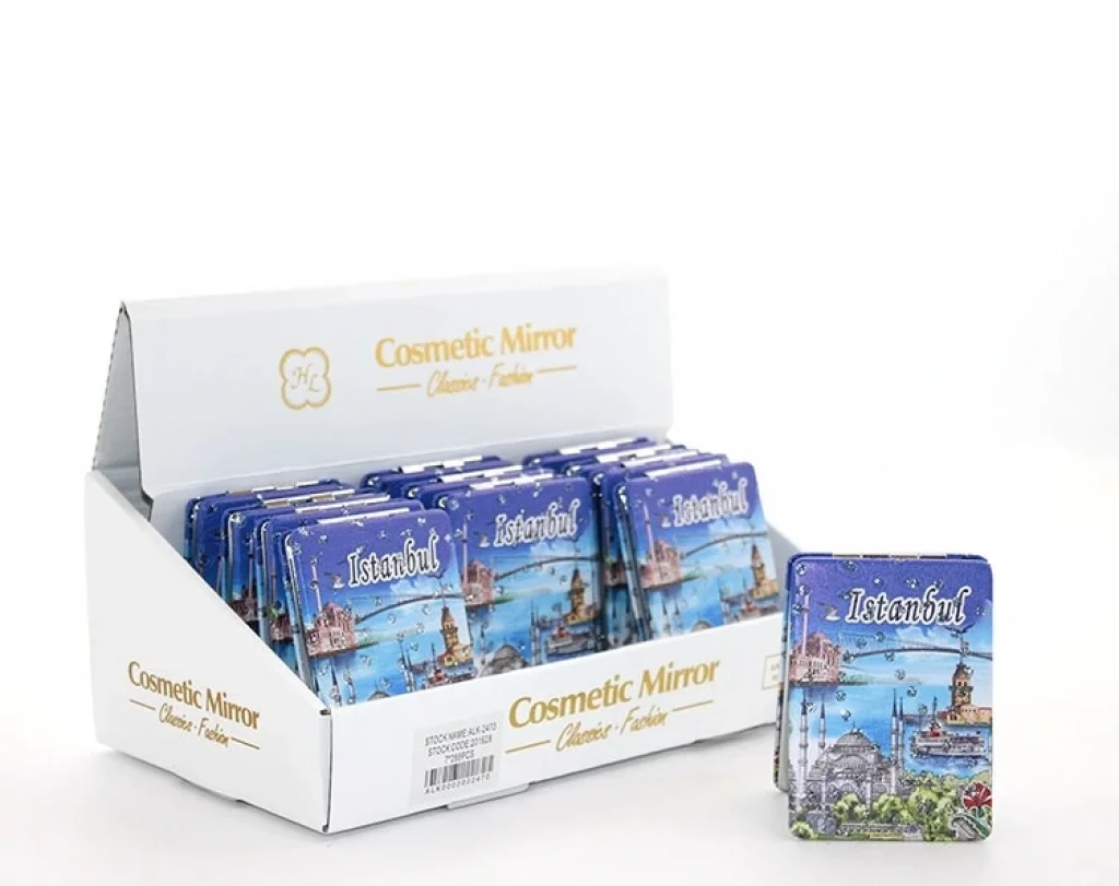 TAŞLI İSTANBUL TASARIMI EL AYNASI İNCE MODEL 25Ürün ÖzellikleriTaşlı İstanbul Tasarımı El Aynası İnce Model 25, İstanbul’un zarif simgelerini taşlı detaylarla şık bir şekilde sunan estetik bir üründür. Dayanıklı malzeme ile üretilmiş olup, uzun ömürlü kullanım sağlar. Taşlı detaylar, aynaya zarif bir görünüm kazandırırken İstanbul'un kültürel mirasını zarif bir biçimde sergiler. İnce model tasarımı sayesinde hafif ve taşınabilir olup, ergonomik yapısı ile rahat bir kullanım deneyimi sunar. Hem kişisel kullanım hem de hediye olarak mükemmel bir tercihtir.Paket İçeriği1 adet Taşlı İstanbul Tasarımı El Aynası İnce Model 25.