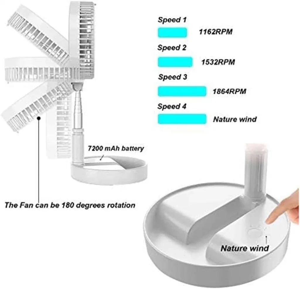 4 Modlu Şarjlı Katlanabilir Yükseltilebilir Taşınabilir Teleskopik Fan Vantilatör Serinletici Portatif Masa Vantilatörü