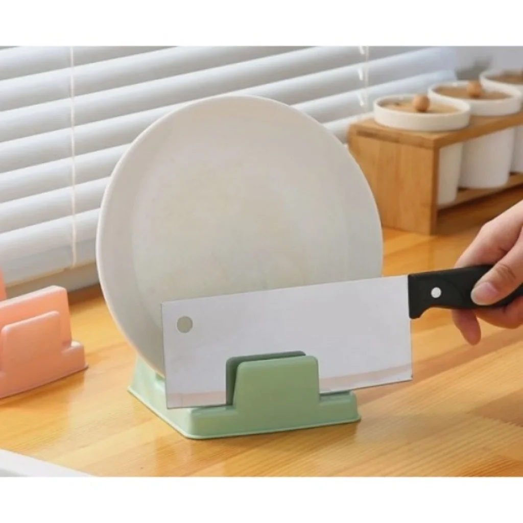 TENCERE KAPAĞI VE KESME TAHTASI TUTUCU MUTFAK STANDIÜrün ÖzellikleriTencere Kapağı ve Kesme Tahtası Tutucu Mutfak Standı, yemek hazırlama sürecinde mutfağınızdaki düzeni korumak ve tezgah üstü karmaşasına son vermek için tasarlanmış akıllı bir çözümdür. Modern tasarımı ve soft pastel renk seçenekleriyle sadece işlevsel bir araç değil, aynı zamanda mutfağınıza estetik bir dokunuş katan şık bir aksesuardır. Yemek yaparken sıcak ve nemli kapakları nereye koyacağınızı düşünme derdini ortadan kaldıran bu mutfak tezgah standı, kapaklardan damlayan suları özel taban haznesinde hapsederek tezgahınızın her zaman temiz ve kuru kalmasını sağlar. Sadece tencere kapakları için değil; ağır satır bıçakları, kesme tahtaları ve hatta tabaklar için güvenli bir dik tutuş sunan çok yönlü bir yapıya sahiptir. Sağlam plastik materyali sayesinde devrilmelere karşı dayanıklıdır ve mutfaktaki en ağır gereçlerinizi bile dengede tutar. Kompakt boyutları ile fazla yer kaplamayan bu pratik mutfak düzenleyici, günlük yemek rutinlerinizi çok daha hızlı, hijyenik ve organize bir hale getirir.Ürün Teknik ÖzellikleriÖzellikAçıklamaÜrün AdıTencere Kapağı ve Kesme Tahtası Tutucu Mutfak StandıYükseklik12.5 cmGenişlik12 cmKapak Bölmesi Genişliği4 cmMalzemeYüksek Kaliteli ve Dayanıklı PlastikRenk SeçeneğiGörseldeki renklerden birisi karışık gönderilir, renk seçimi yapılamazKullanım AlanıTencere Kapağı, Kesme Tahtası, Satır Bıçak, Tabak DüzenlemePaket İçeriği1 Adet Tencere Kapağı ve Kesme Tahtası Tutucu Mutfak Standı