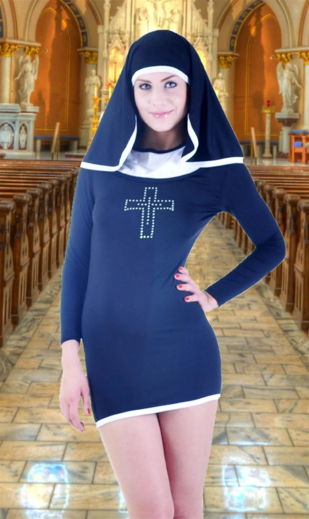 BUĞZ Terry Pau TP102707 Seksi Rahibe Kostümü
