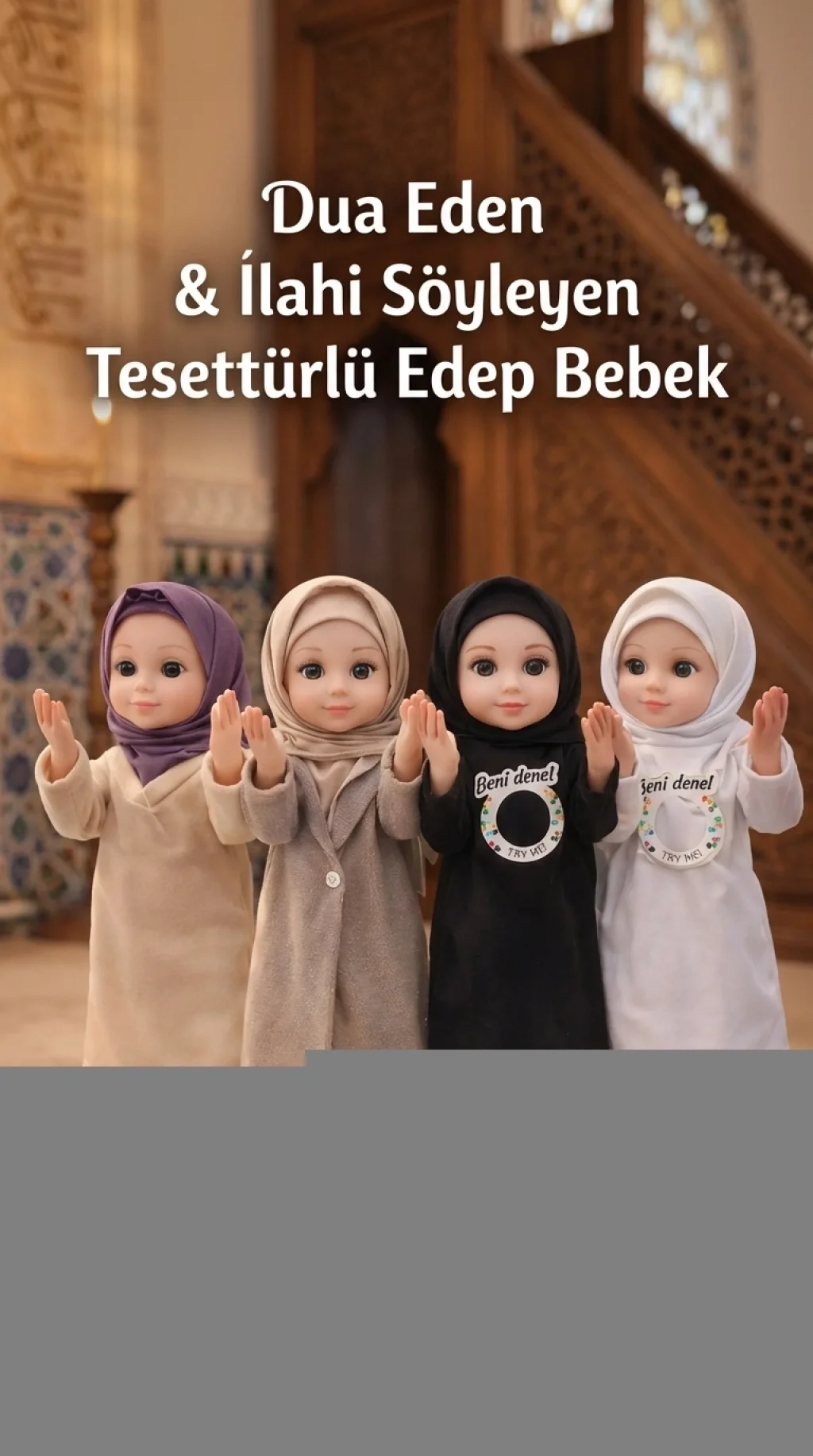 Edep bebek, dua okuma ve ilahi söyleme özellikleriyle özel tasarlanmıştır. Tesettürlü kıyafetiyle dikkat çeker. Ramazan ayı için ideal bir hediye seçeneğidir. Çocuklar için eğitici ve manevi bir oyundur.