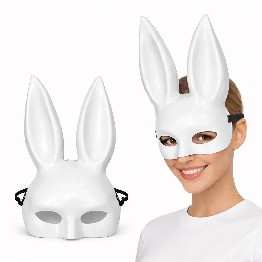 BUĞZ Uzun Kulaklı Beyaz Lüks Tavşan Maskesi