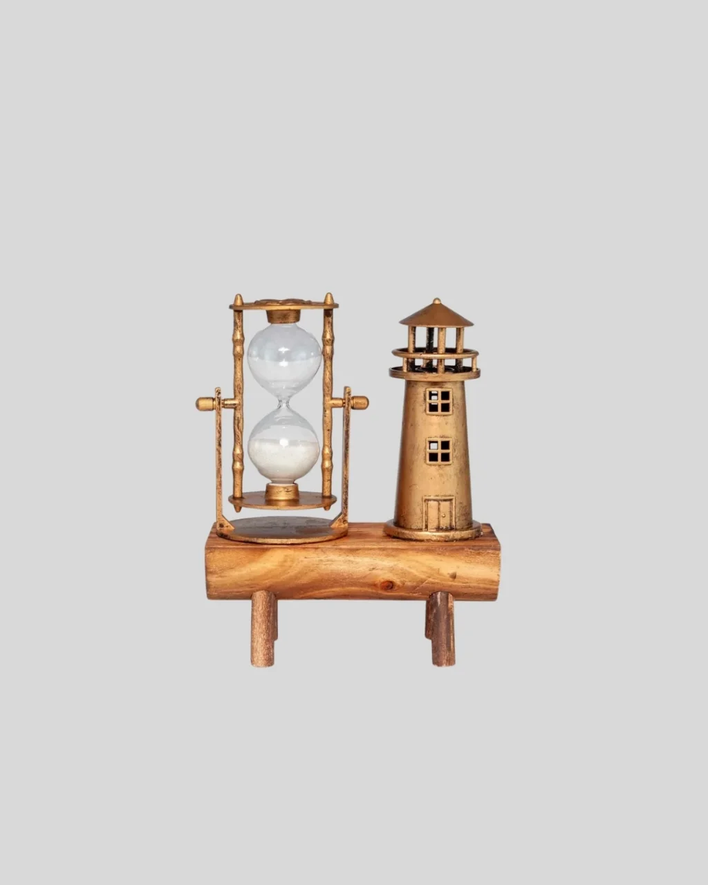 Bu masa süsü, klasik zaman ölçer kum saati ile birlikte ahşap bir zemin üzerinde konumlandırılmış minyatür bir deniz feneri figürü içerir. Kumun akışı izlerken rahatlatıcı bir etki bırakır, deniz feneri ise görsel bütünlüğü güçlendirir. Doğal dokusu ve şık tasarımı ile her tarz dekorasyona kolayca uyum sağlar. 15x20 cm ebatları sayesinde sehpa, raf, masa gibi farklı alanlarda kolaylıkla kullanılabilir. Zarif ve dayanıklı yapısıyla hem kişisel kullanım hem de özel günlerde anlamlı bir hediye seçeneği oluşturur.