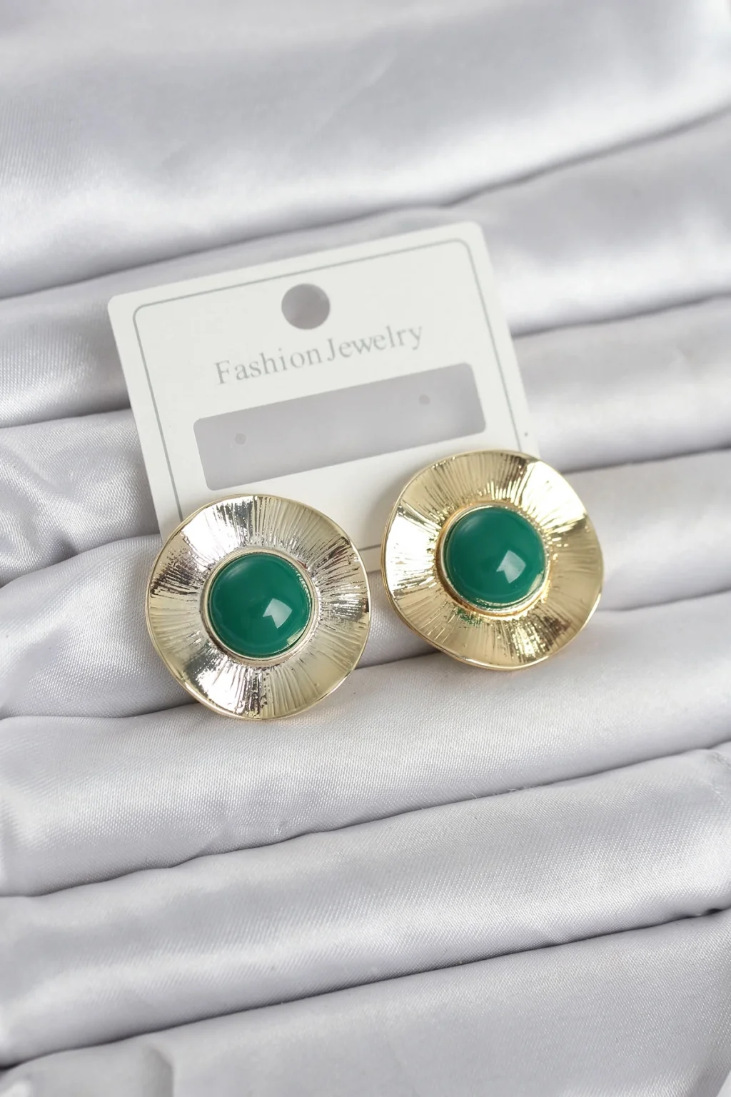 BUĞZ Vintage Model Yeşil Gold Renk Pirinç Kadın Küpe