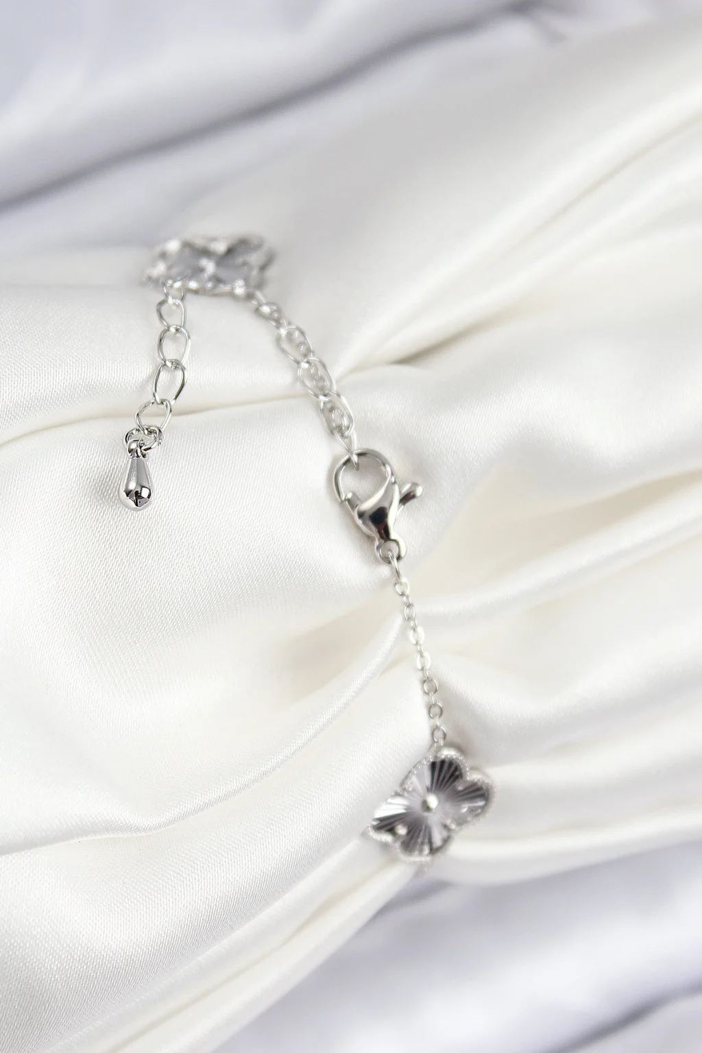 BUĞZ VIP Pirinç Yonca Model Gümüş Renk Kadın Bileklik - Lisinya