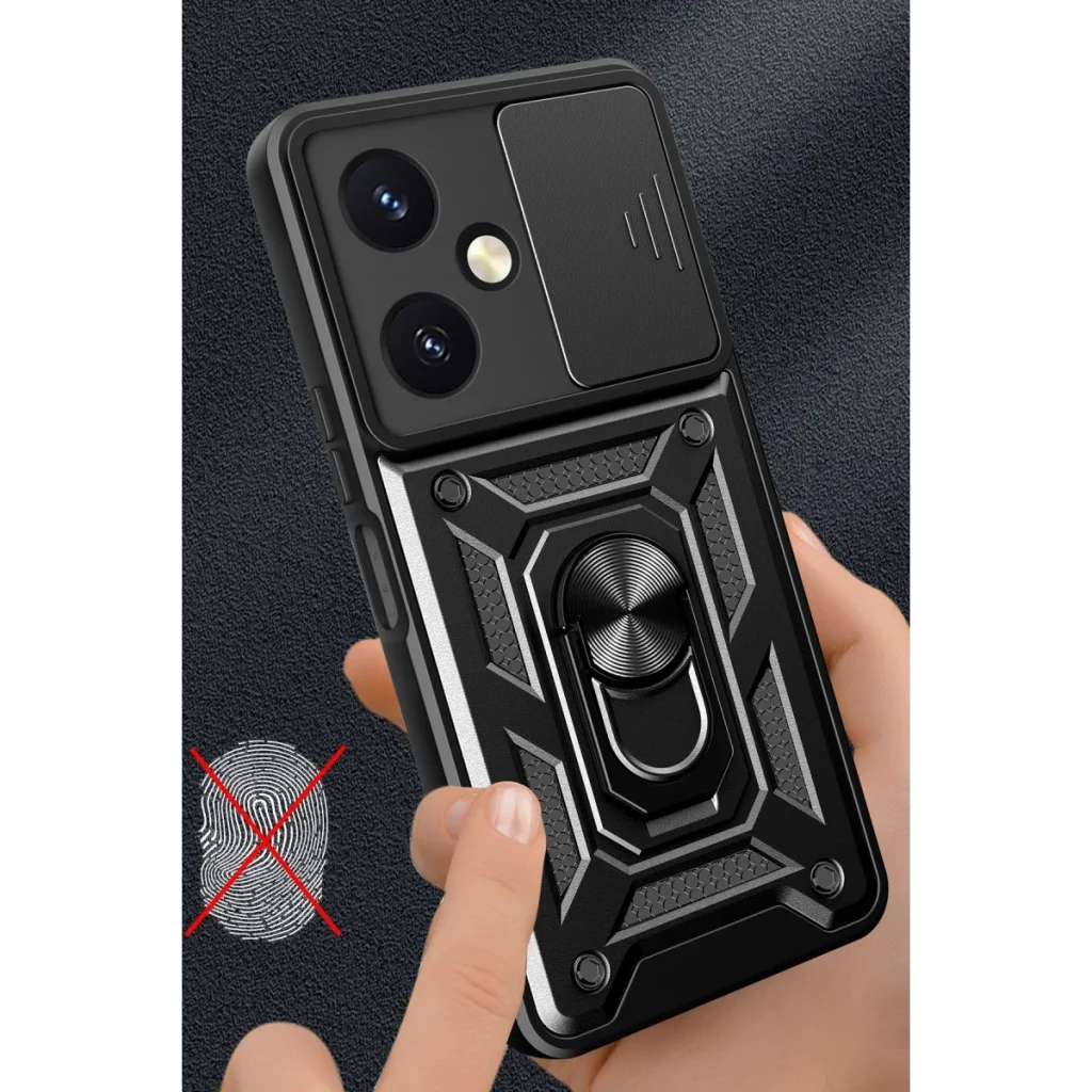 BUĞZ Vivo Y27 Kılıf Pars Lens Yüzüklü Silikon - Siyah