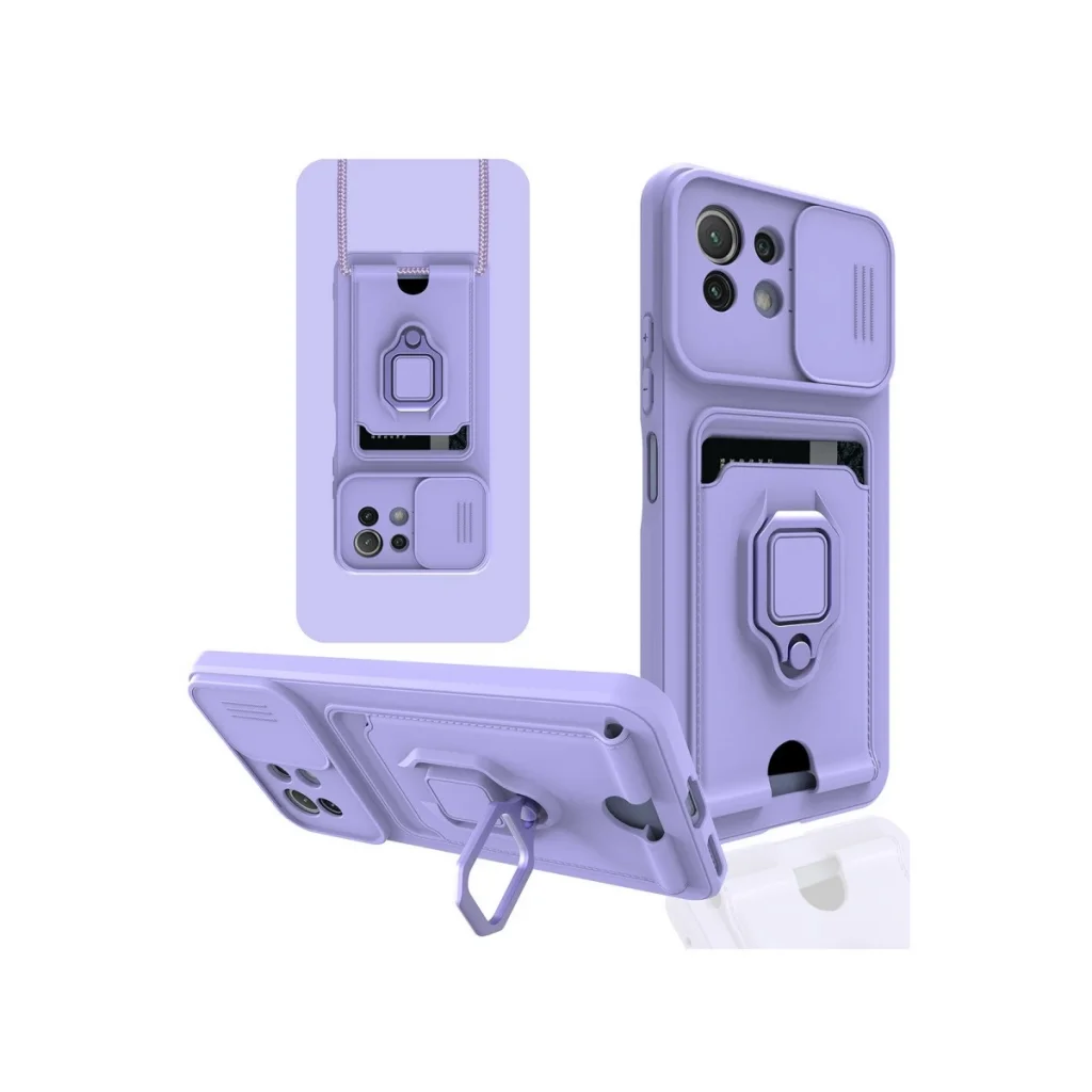 Xiaomi Mi 11 Lite Kılıf Zuma Kartvizitli Yüzüklü Silikon - Lila
