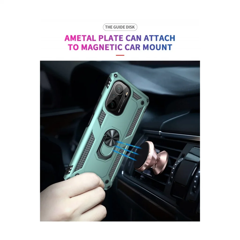 Xiaomi Poco F3 Kılıf Sofya Yüzüklü Silikon Kapak - Yeşil