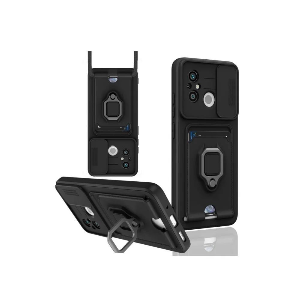 Xiaomi Redmi 12c Kılıf Zuma Kartvizitli Yüzüklü Silikon - Siyah