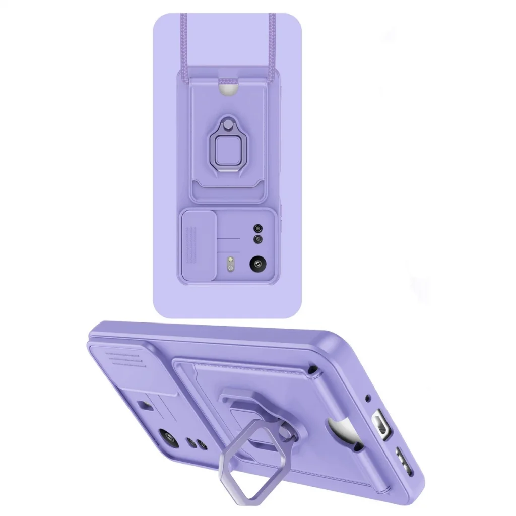 BUĞZ Xiaomi Redmi 13c Kılıf Zuma Kartvizitli Yüzüklü Silikon - Lila