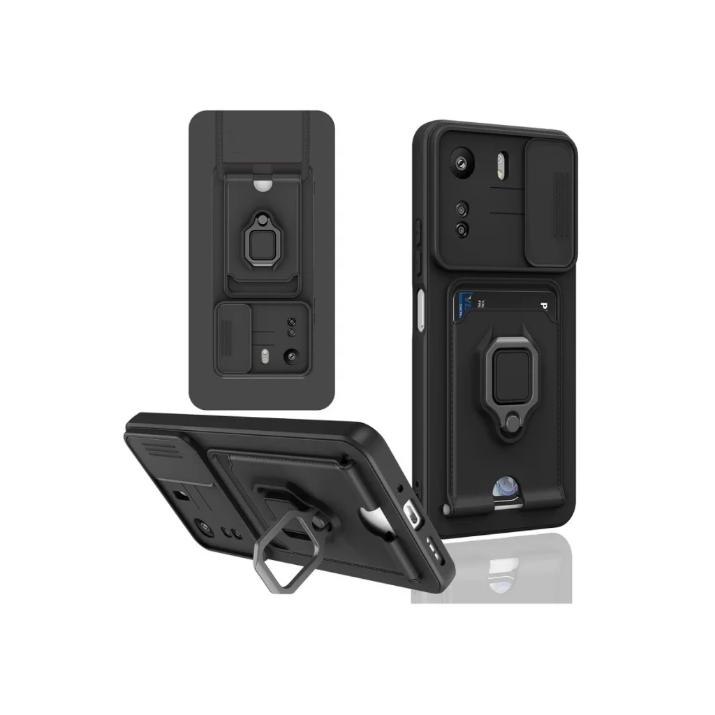 Xiaomi Redmi 13c Kılıf Zuma Kartvizitli Yüzüklü Silikon - Siyah