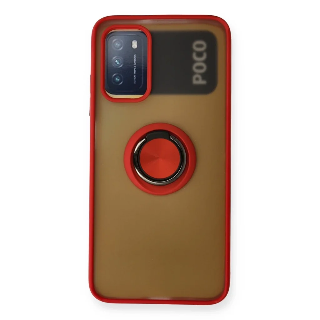 Xiaomi Redmi 9t Kılıf Montreal Yüzüklü Silikon Kapak - Kırmızı
