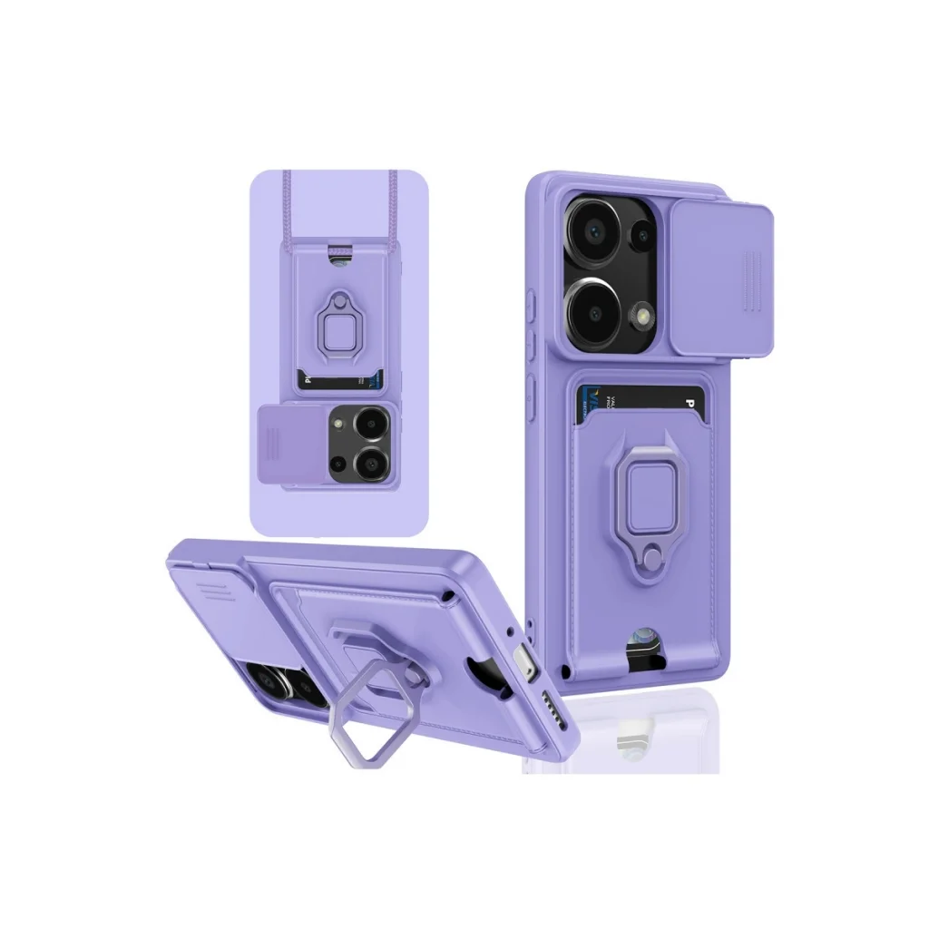 BUĞZ Xiaomi Redmi Note 13 Pro 4g Kılıf Zuma Kartvizitli Yüzüklü Silikon - Lila