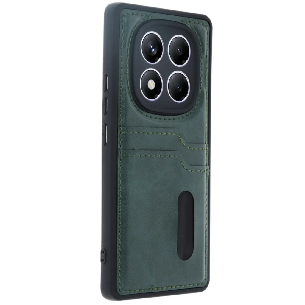 Xiaomi Redmi Note 14 Pro 4g Kılıf Sara Kartvizitli Deri Kılıf - Koyu Yeşil