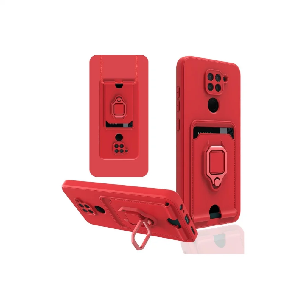 BUĞZ Xiaomi Redmi Note 9 Kılıf Zuma Kartvizitli Yüzüklü Silikon - Kırmızı
