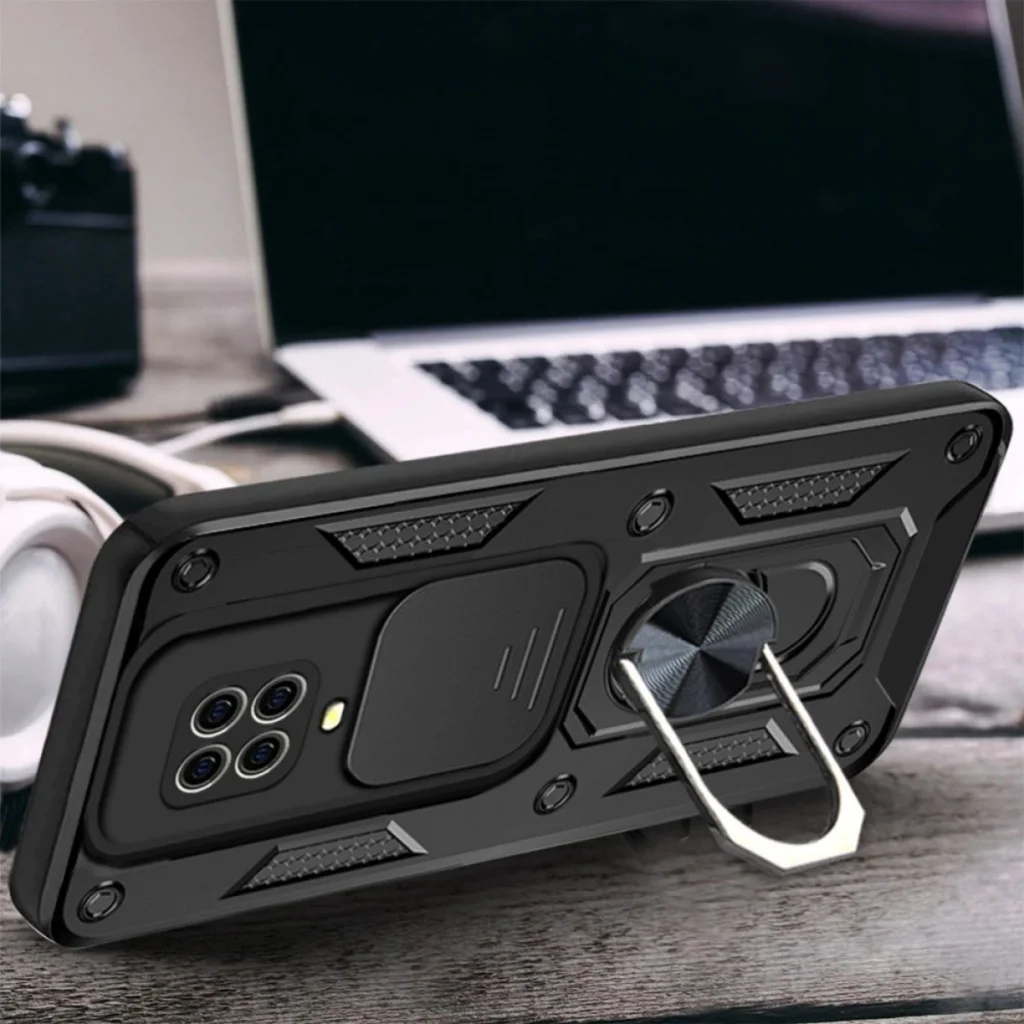 Xiaomi Redmi Note 9 Pro Kılıf Pars Lens Yüzüklü Silikon - Siyah