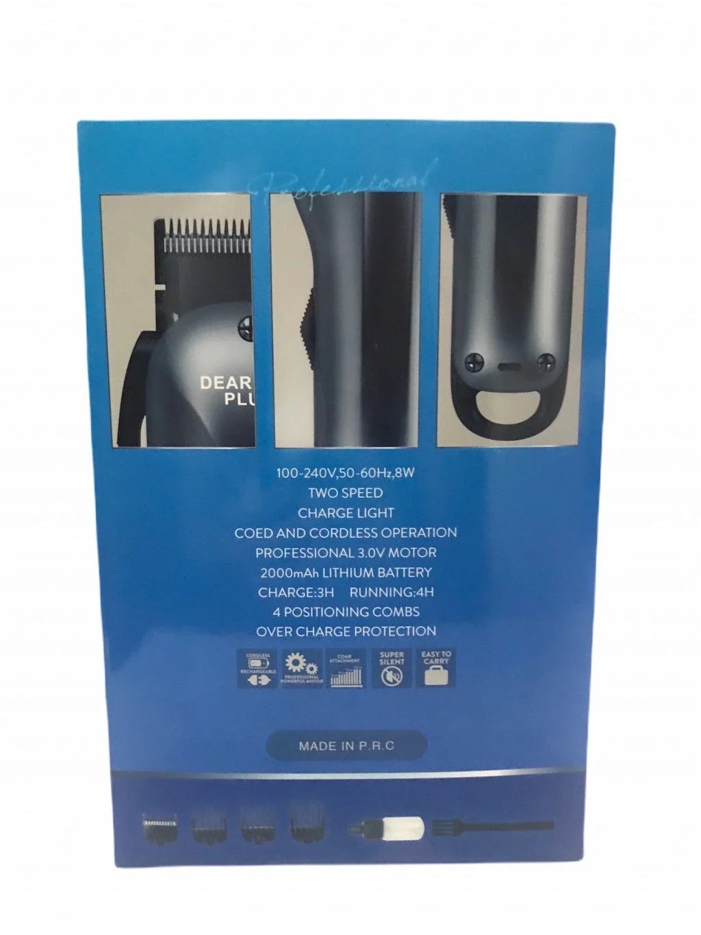 -100-240 V -56-60 HZ -8 W -2 Hız -Şarj Uzunluğu -Karma ve Kablosuz Çalışma -2000 Mah Lityum Pil -Şarj 3 H -Hız 4 H -4 Başlıklı Tarak -Aşırı Şarj Koruması